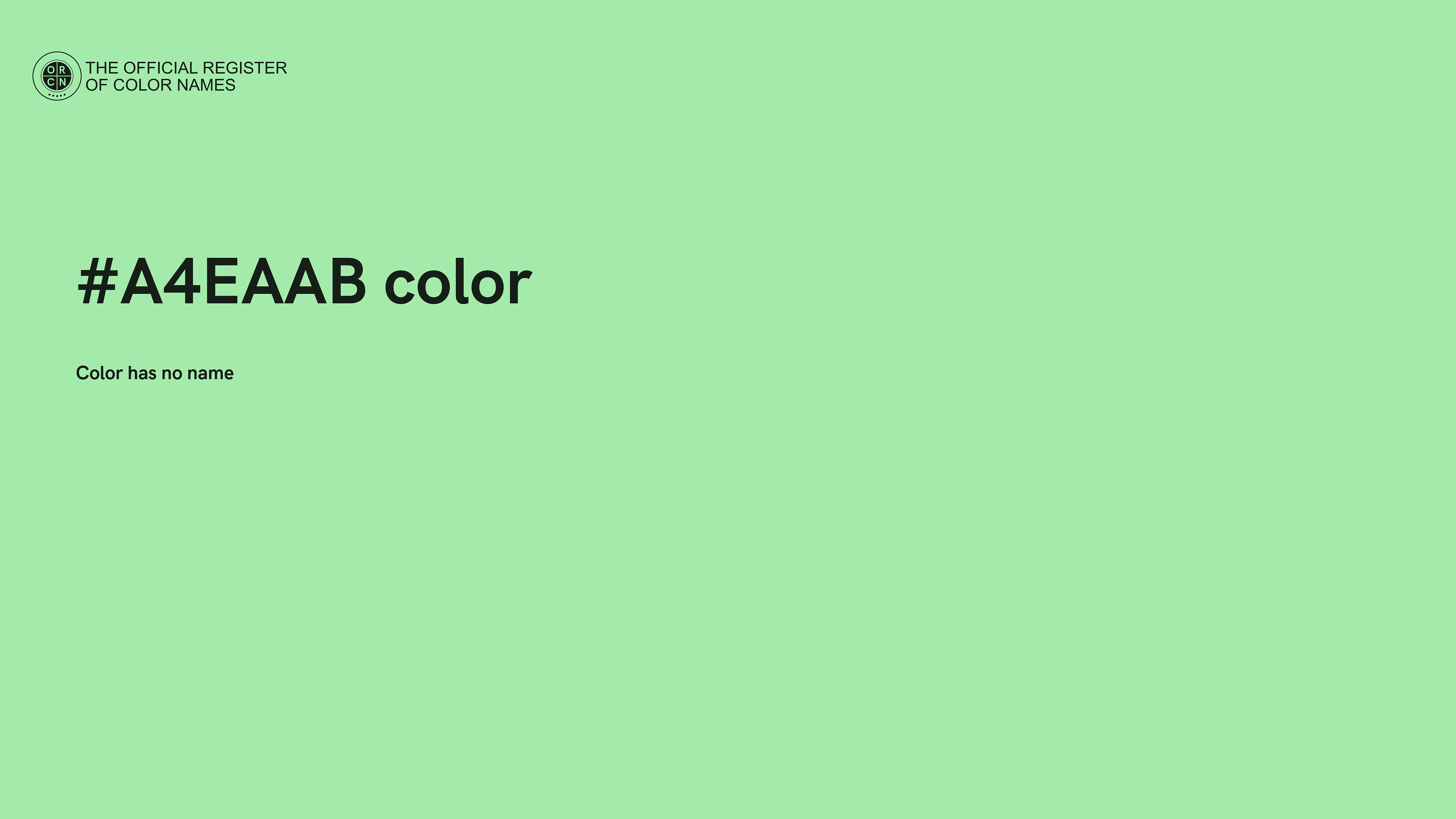 The digital color HEX #A4EAAB belongs to the Green Color Family featuring High Saturation (Saturation Family) and Very Light (Brightness Family).