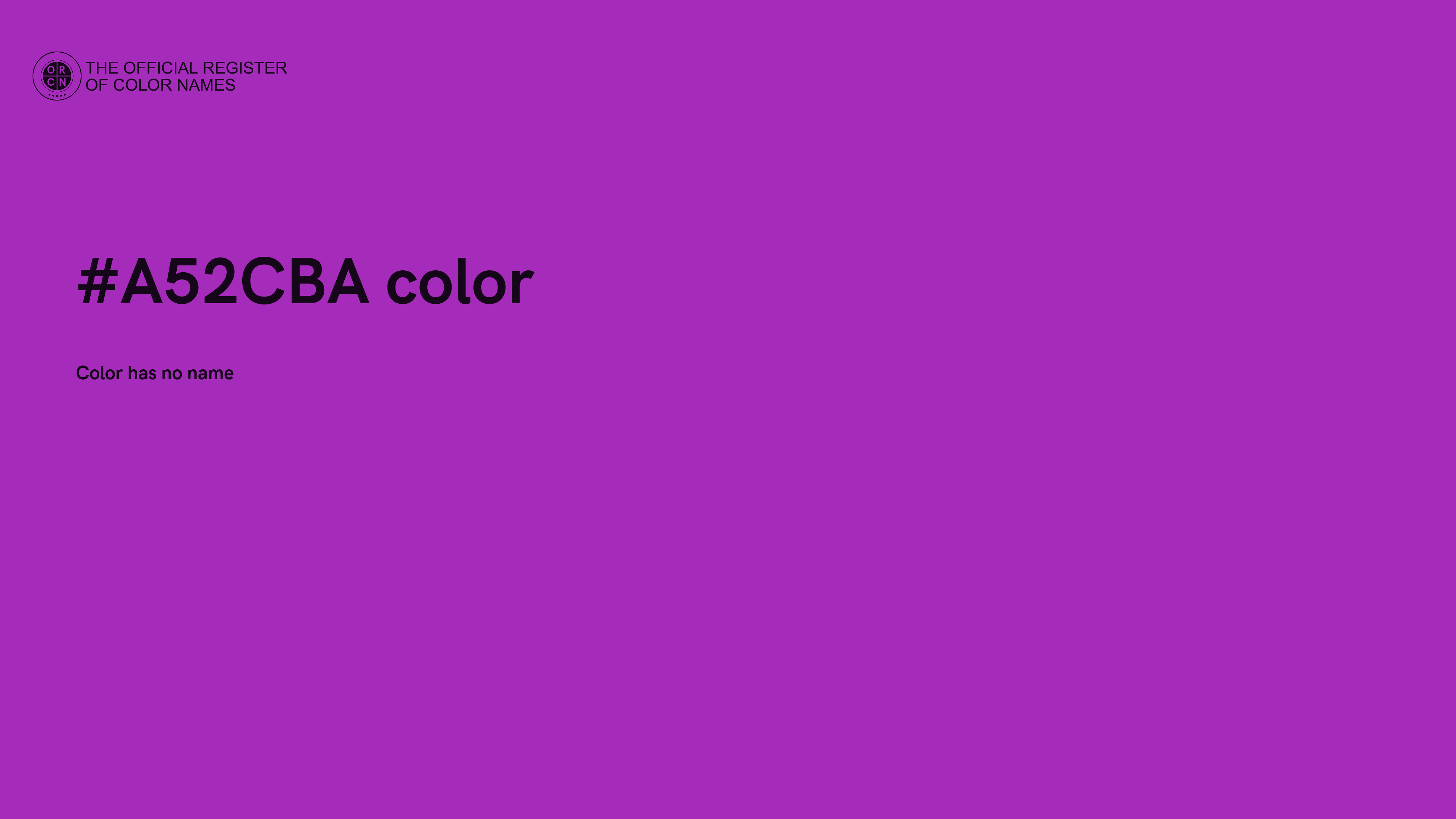 For printing in non digital world, #A52CBA is represented in CMYK as 8 Cyan, 56 Magenta, 0 Yellow, and 27 Black (Key) (C:8 M:56 Y:0 K:27).