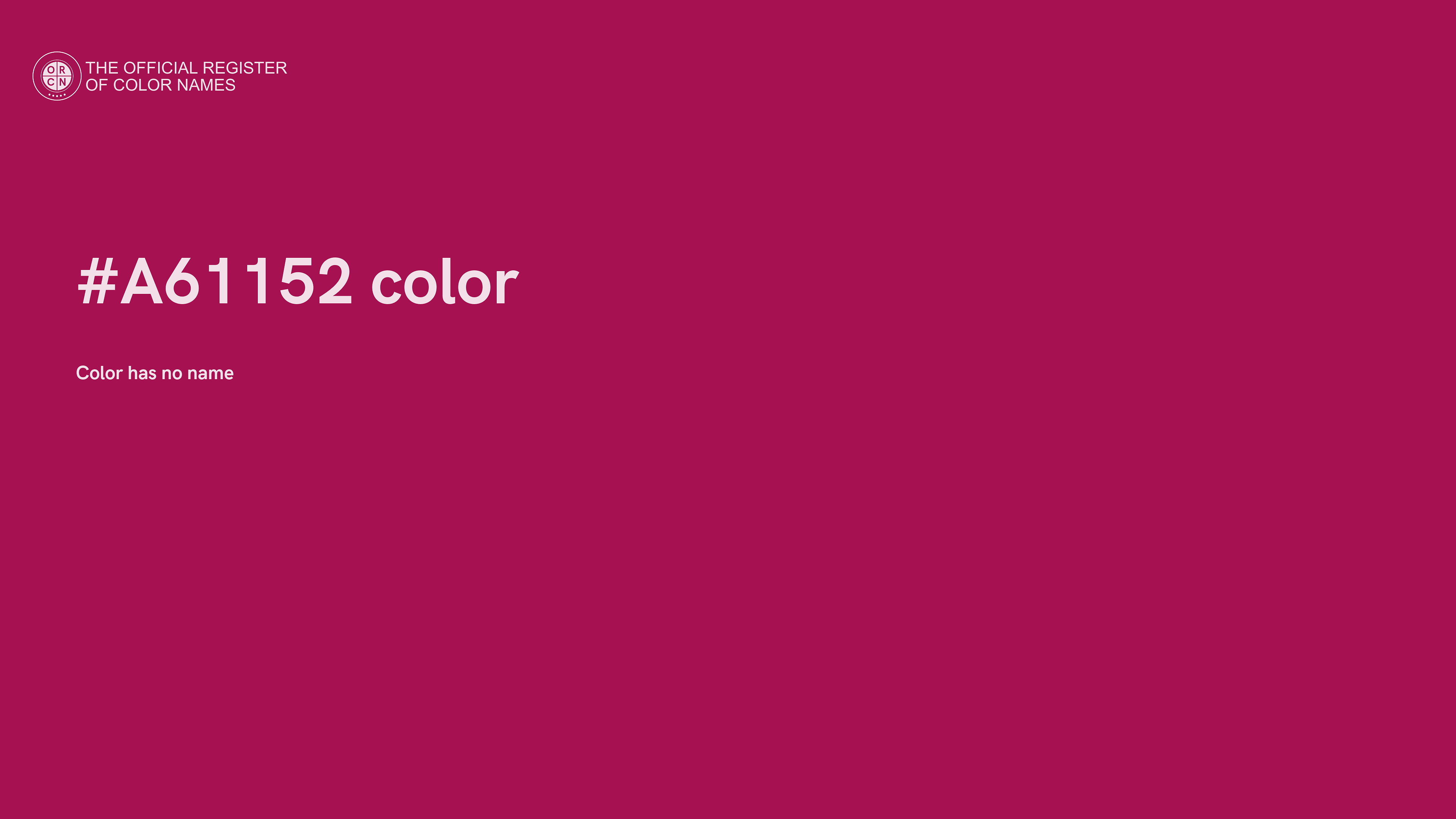 The digital color HEX #A61152 belongs to the Rose Color Family featuring High Saturation (Saturation Family) and Neutral (Brightness Family).