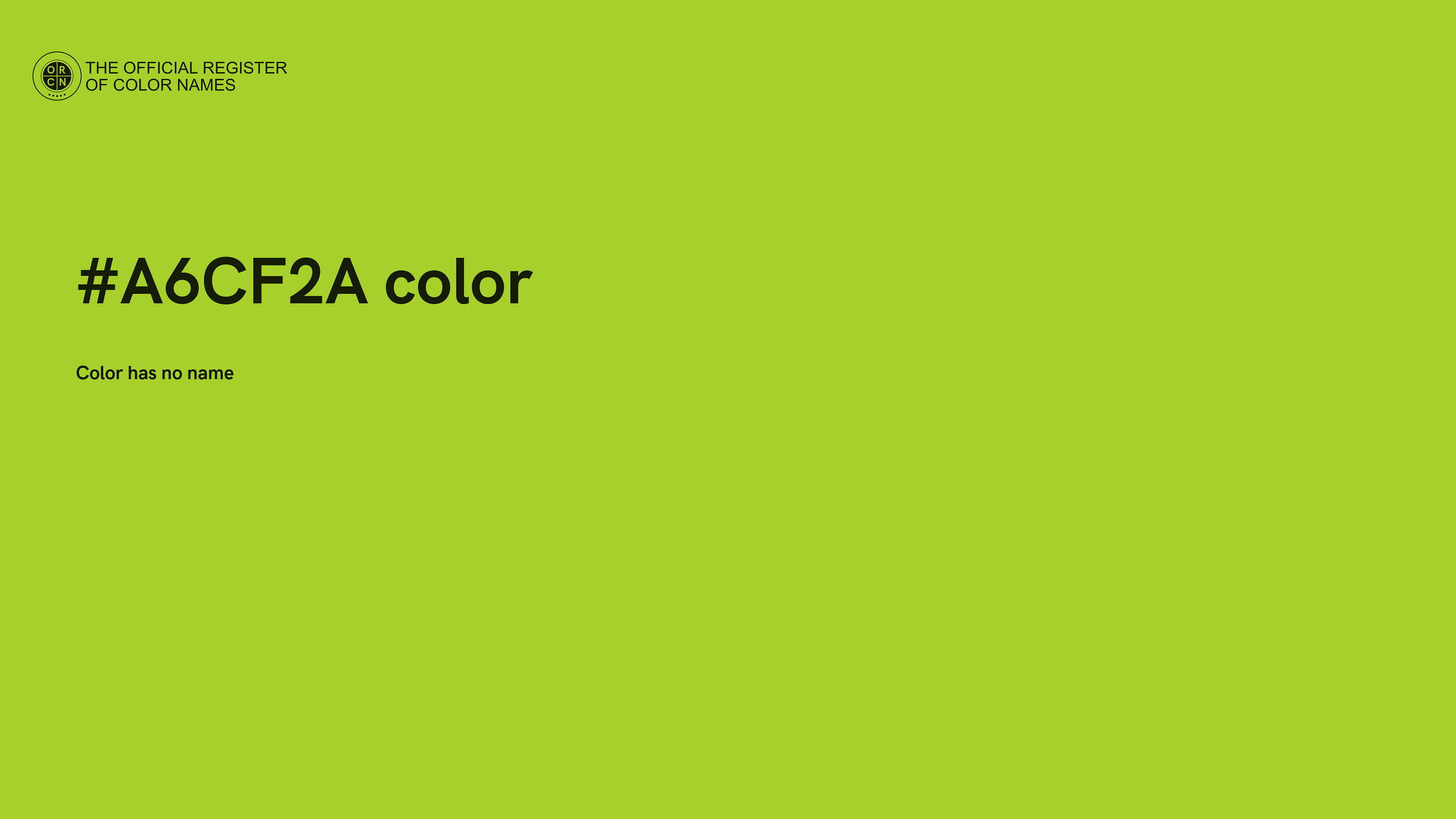 The digital color HEX #A6CF2A belongs to the Chartreuse Color Family featuring High Saturation (Saturation Family) and Light (Brightness Family).