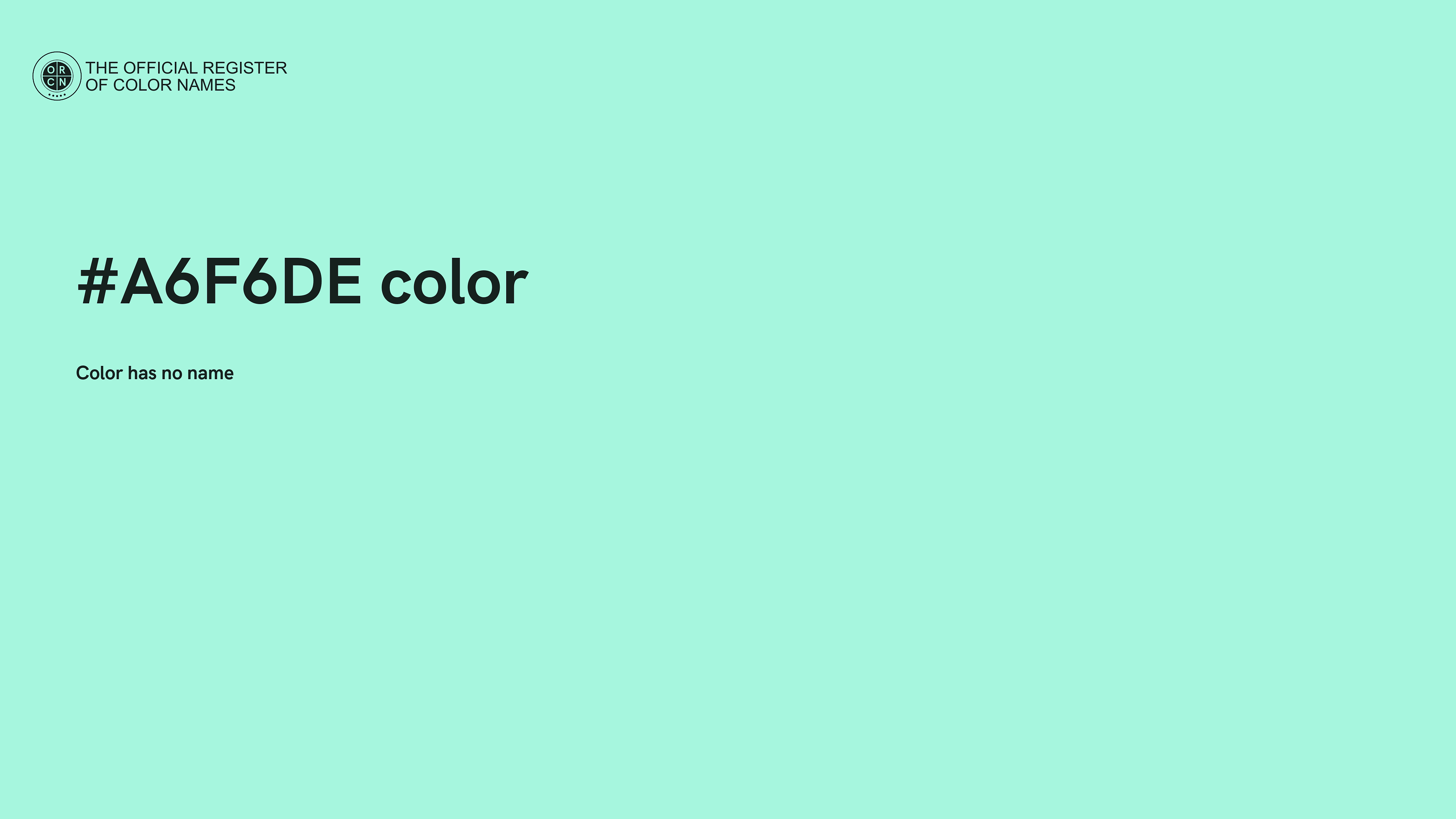 The digital color HEX #A6F6DE belongs to the Spring Green Color Family featuring High Saturation (Saturation Family) and Very Light (Brightness Family).
