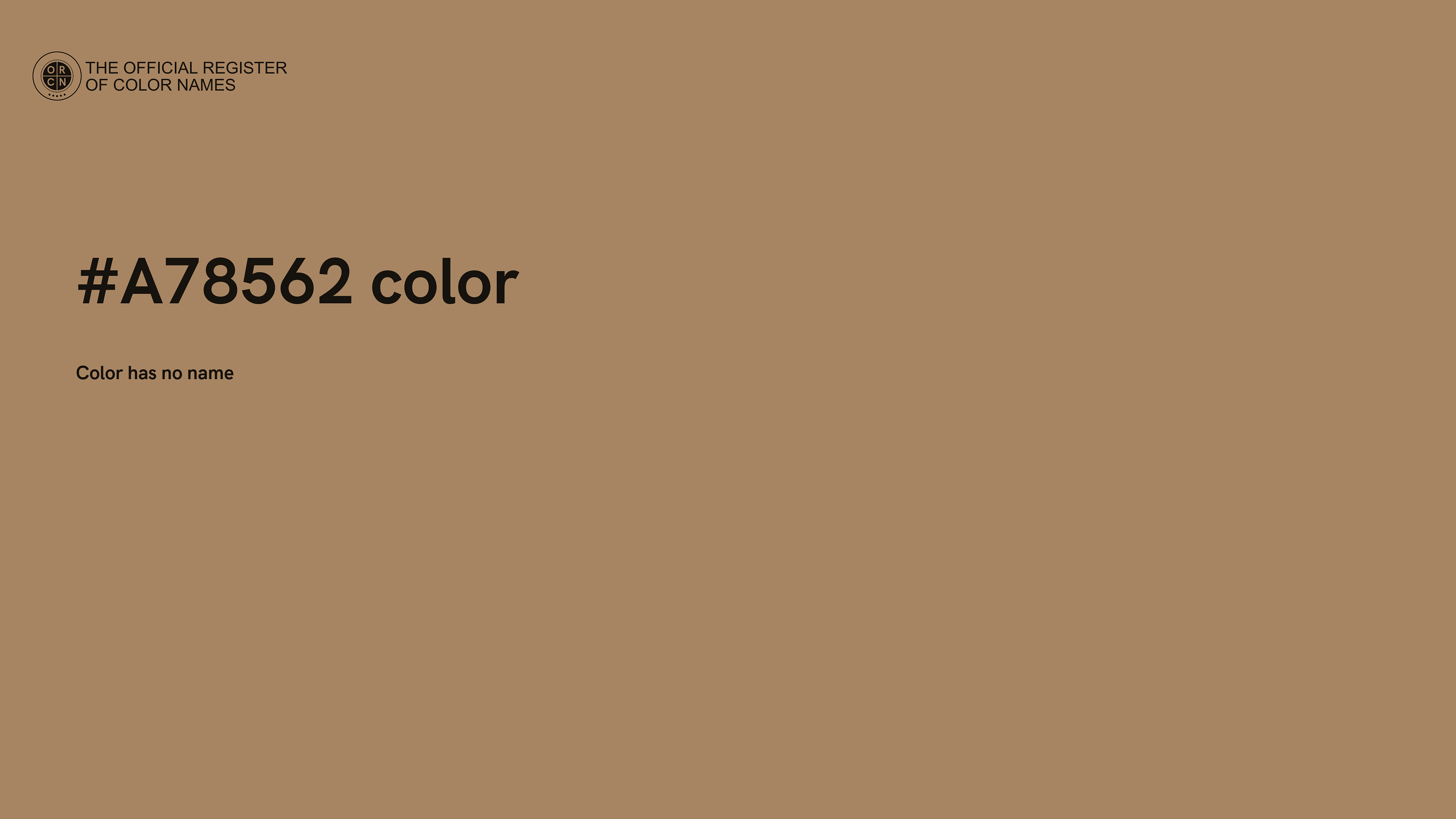 The digital color HEX #A78562 belongs to the Orange Color Family featuring Mild Saturation (Saturation Family) and Light (Brightness Family).