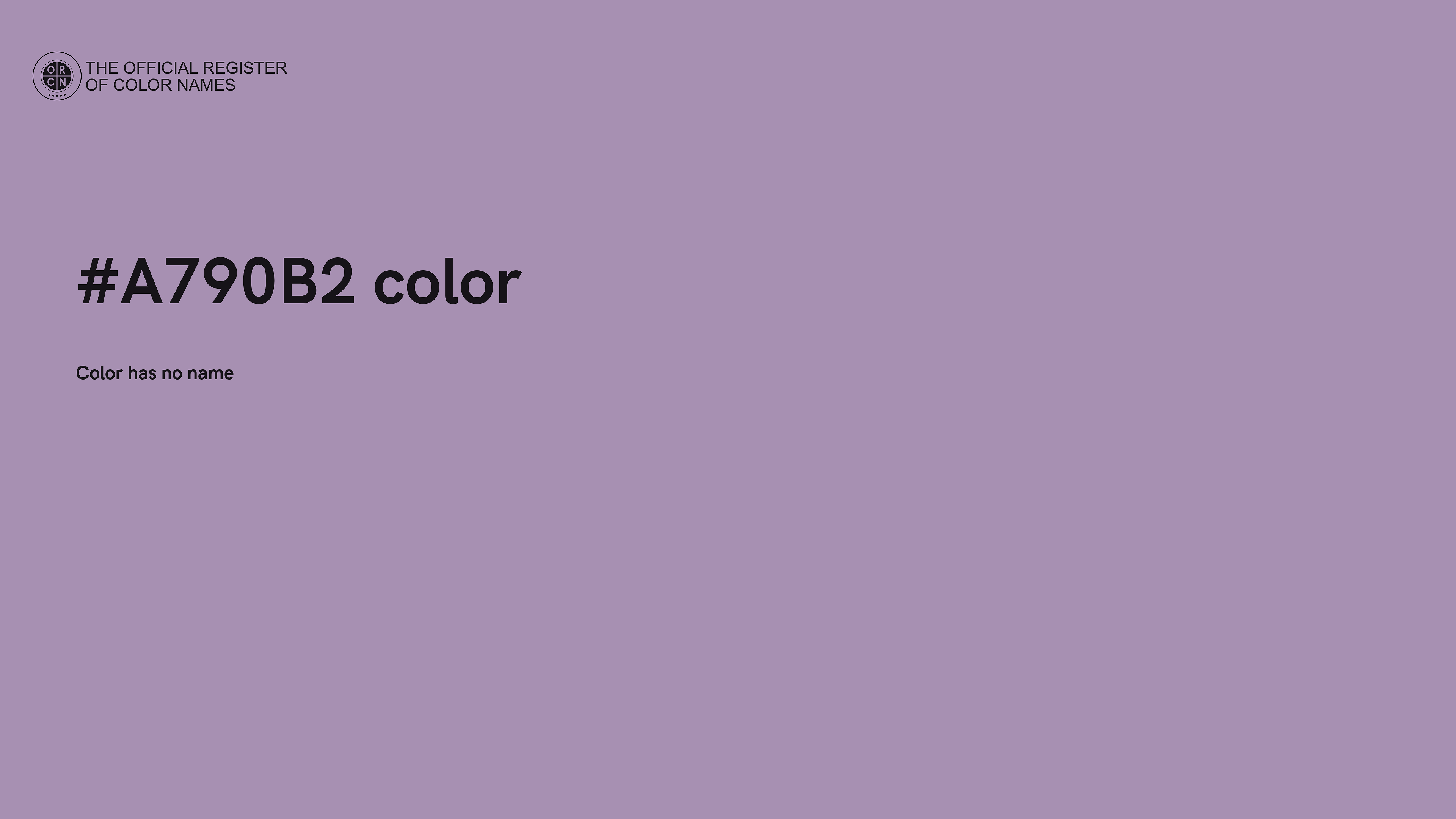 The digital color HEX #A790B2 belongs to the Violet Color Family featuring Low Saturation (Saturation Family) and Very Light (Brightness Family).