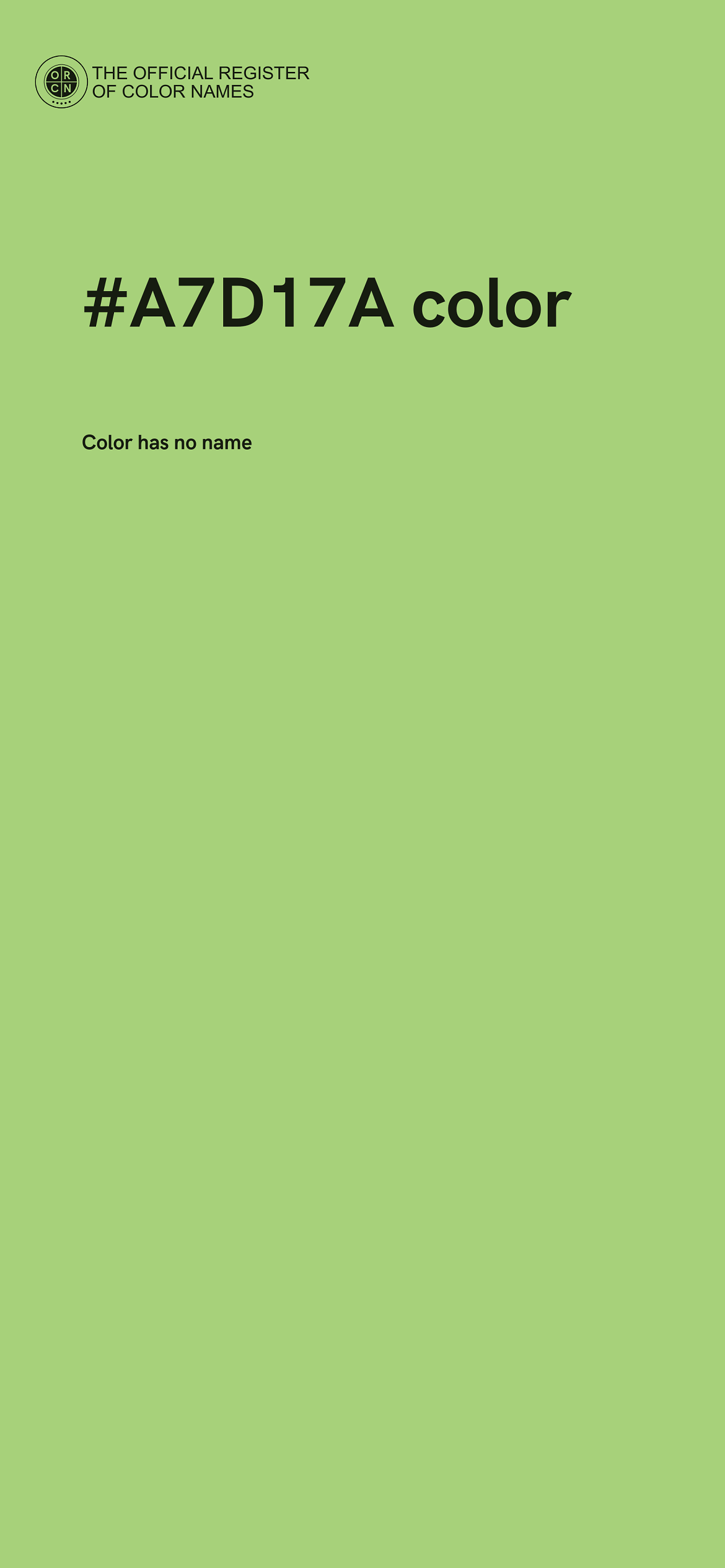 The digital color HEX #A7D17A belongs to the Chartreuse Color Family featuring Moderate Saturation (Saturation Family) and Very Light (Brightness Family).