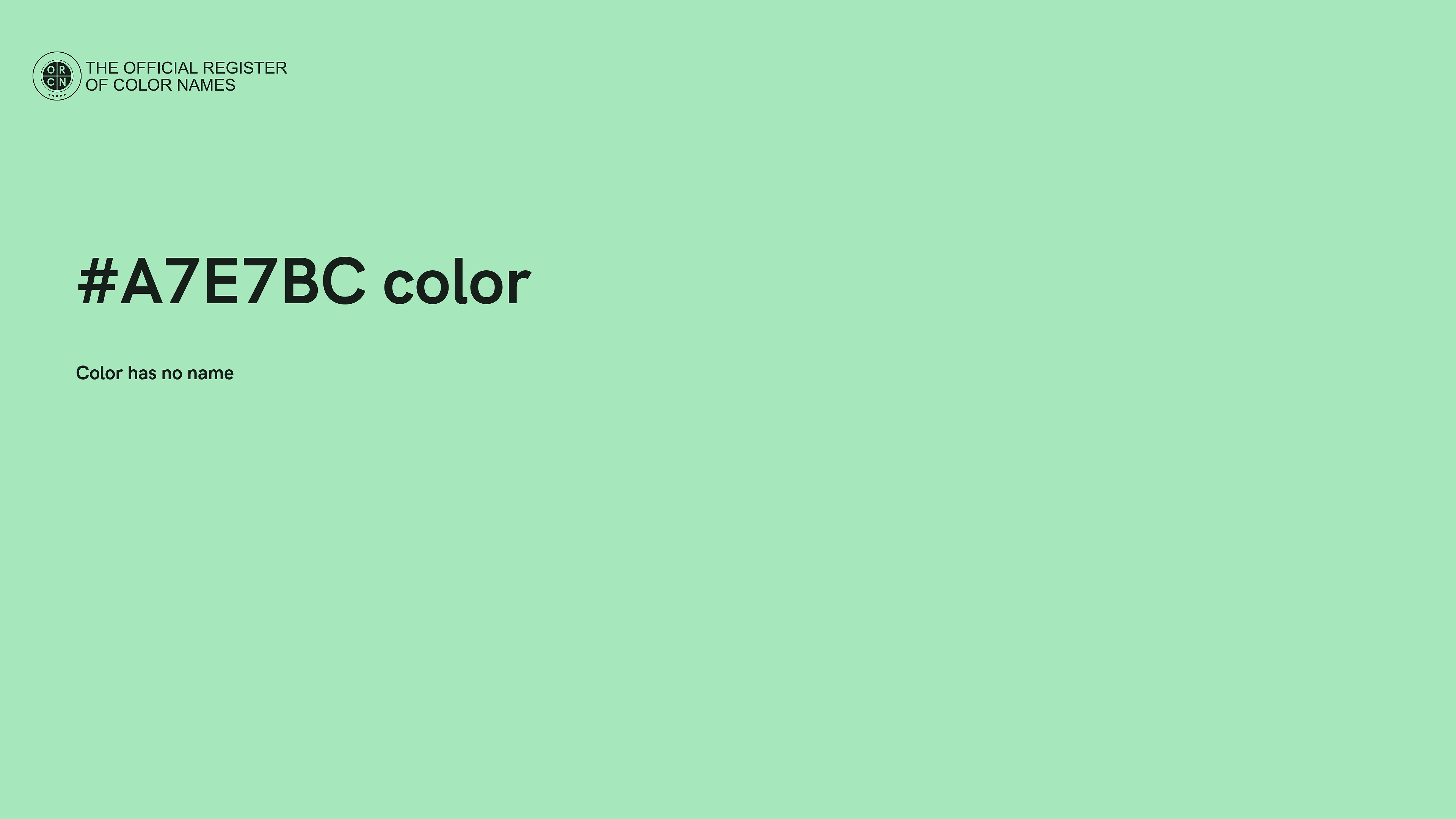 The digital color HEX #A7E7BC belongs to the Spring Green Color Family featuring Moderate Saturation (Saturation Family) and Very Light (Brightness Family).