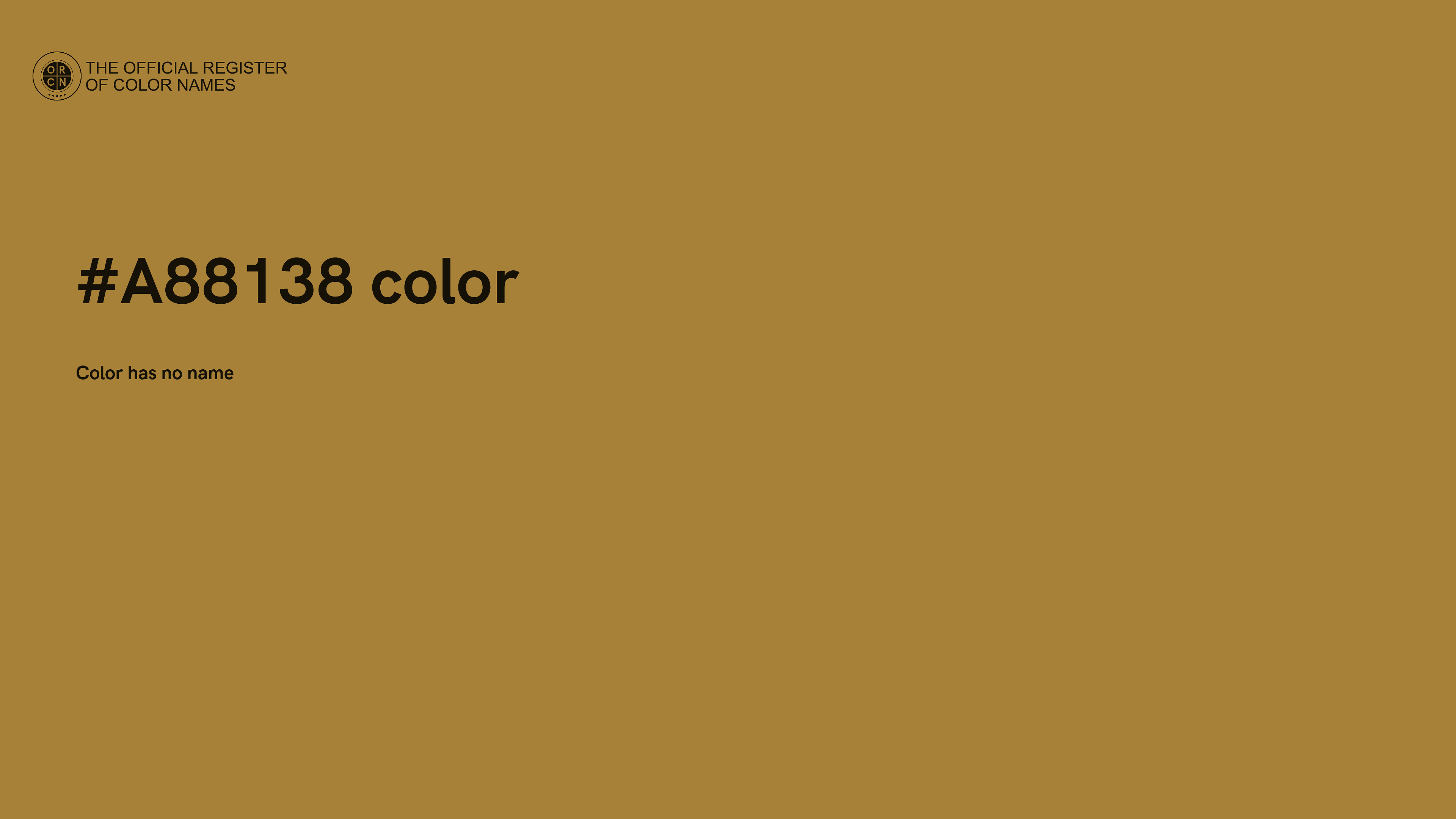 The digital color HEX #A88138 belongs to the Orange Color Family featuring Moderate Saturation (Saturation Family) and Light (Brightness Family).