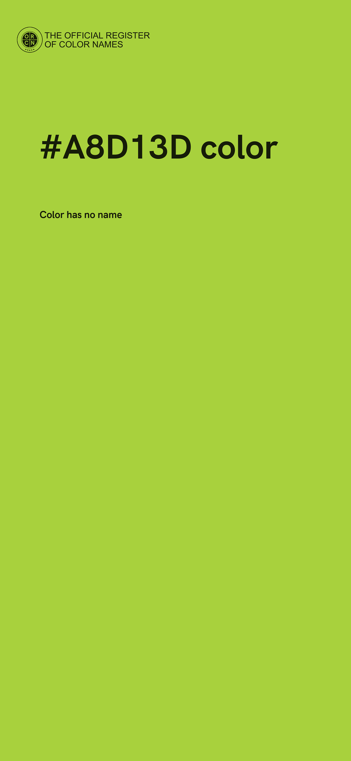 The digital color HEX #A8D13D belongs to the Chartreuse Color Family featuring High Saturation (Saturation Family) and Light (Brightness Family).