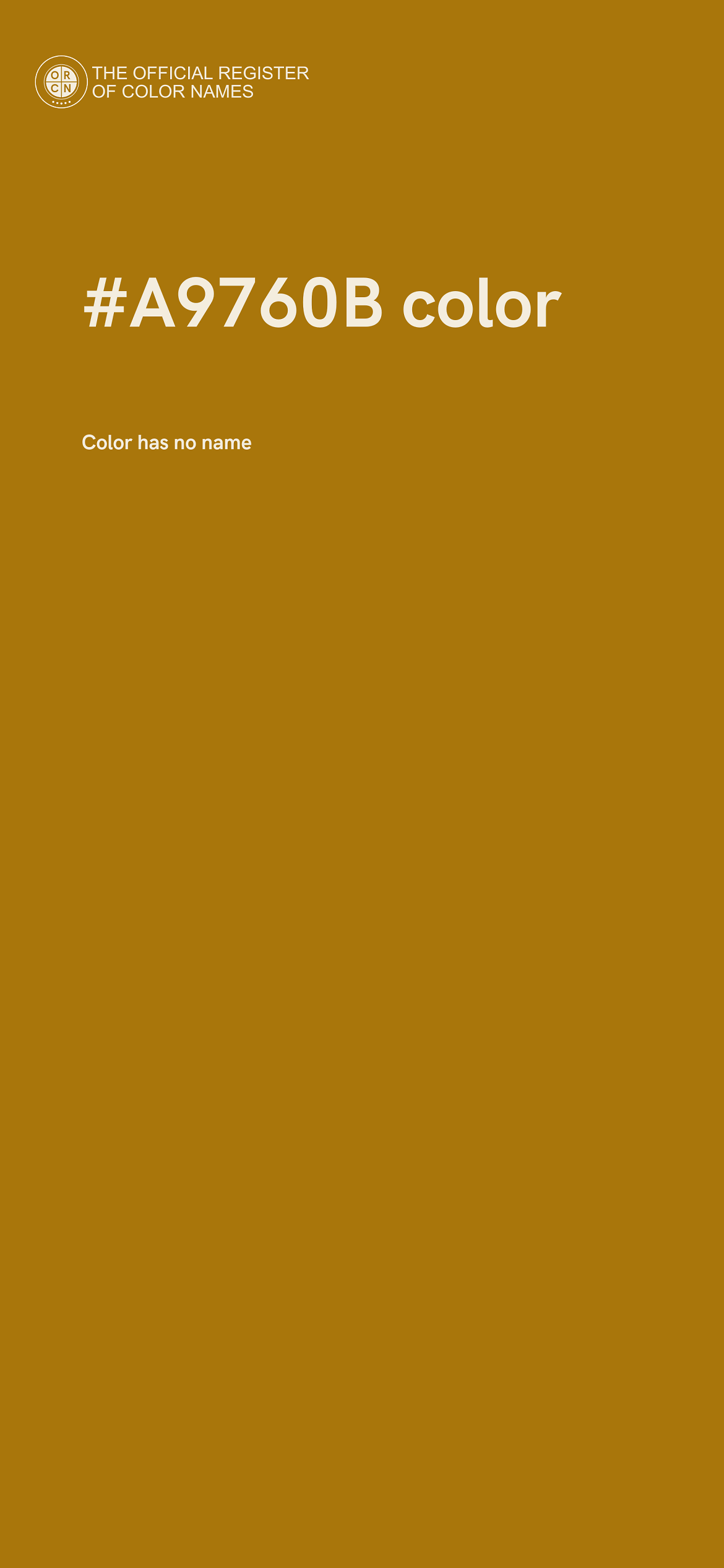 The digital color HEX #A9760B belongs to the Orange Color Family featuring Full Saturation (Saturation Family) and Neutral (Brightness Family).