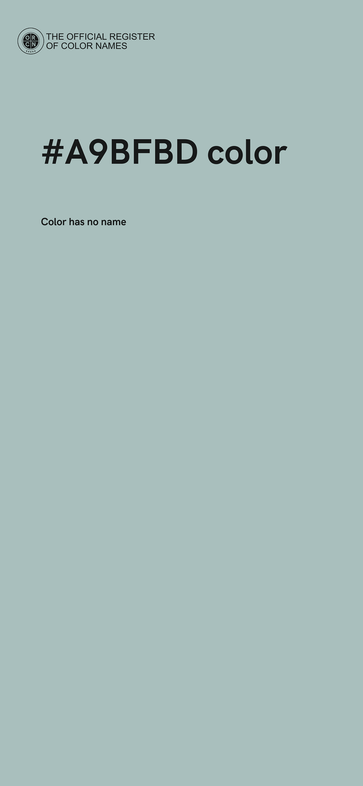 For printing in non digital world, #A9BFBD is represented in CMYK as 9 Cyan, 0 Magenta, 1 Yellow, and 25 Black (Key) (C:9 M:0 Y:1 K:25).