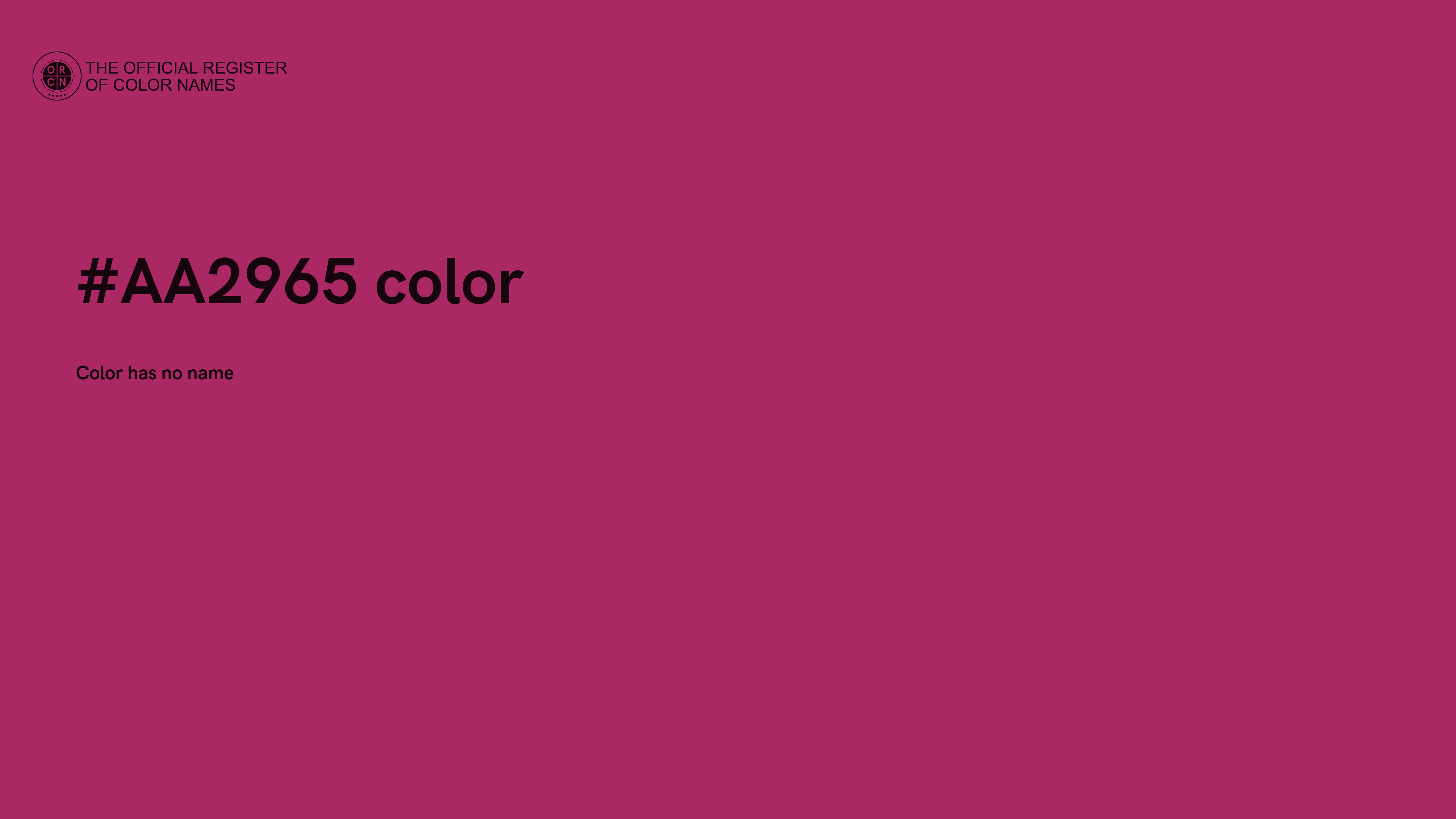 The digital color HEX #AA2965 belongs to the Rose Color Family featuring High Saturation (Saturation Family) and Light (Brightness Family).
