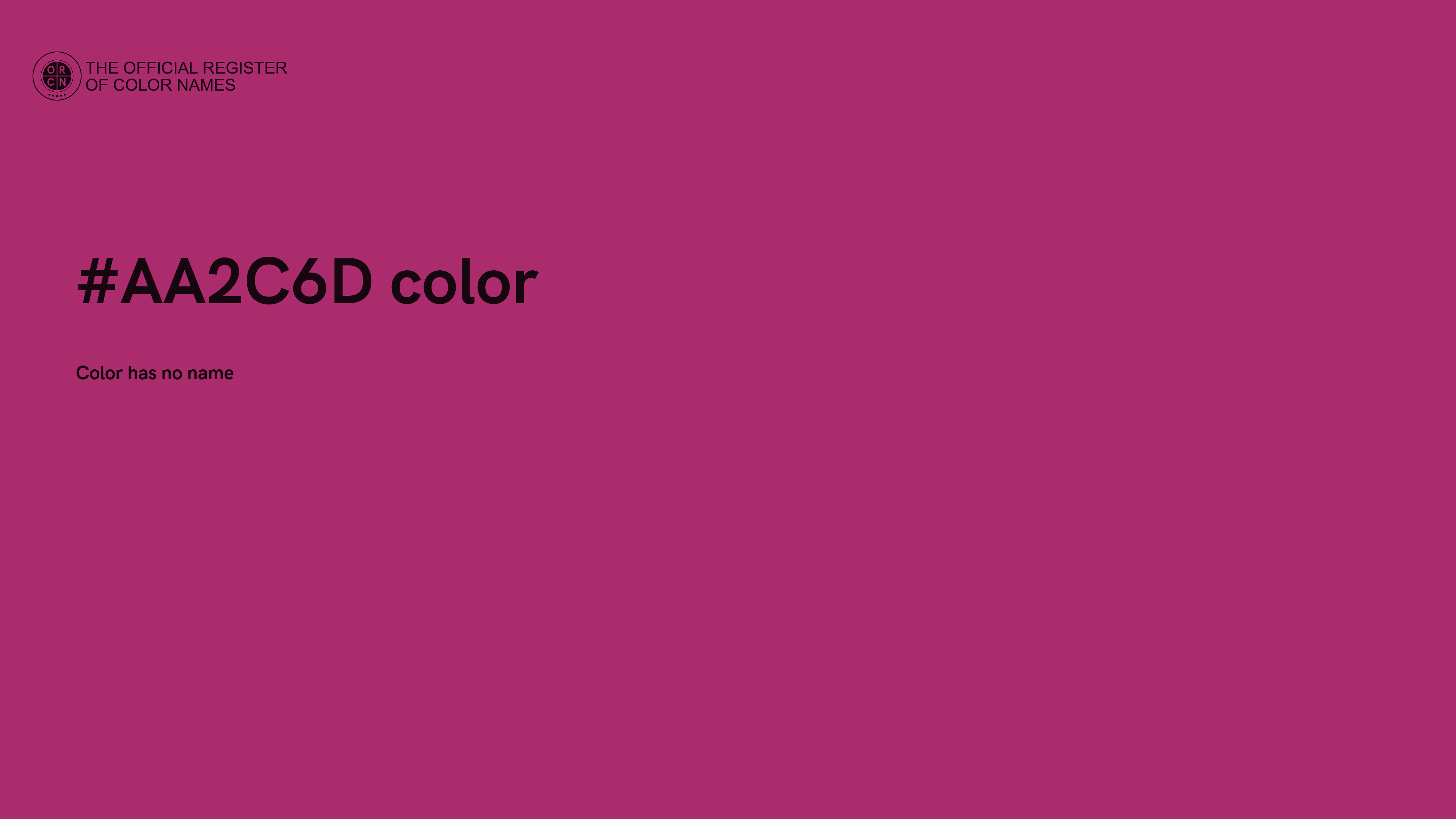 The digital color HEX #AA2C6D belongs to the Rose Color Family featuring Moderate Saturation (Saturation Family) and Light (Brightness Family).