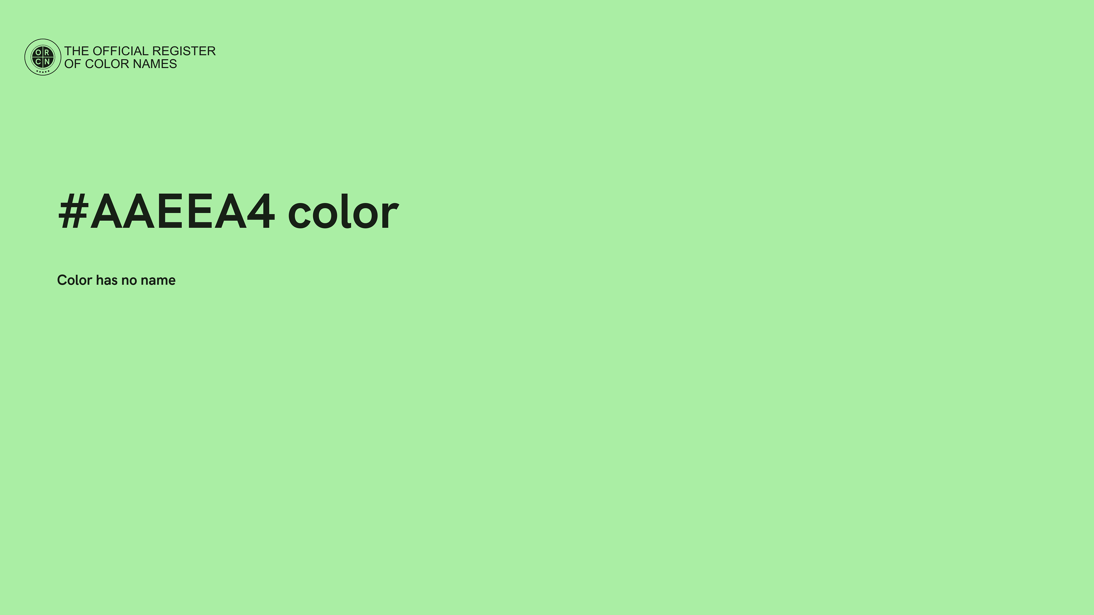 The digital color HEX #AAEEA4 belongs to the Green Color Family featuring High Saturation (Saturation Family) and Very Light (Brightness Family).