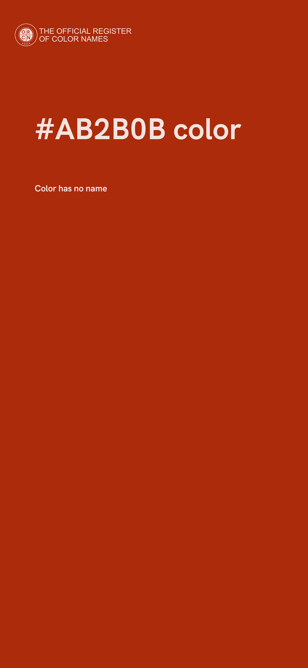 The digital color HEX #AB2B0B belongs to the Red Color Family featuring Full Saturation (Saturation Family) and Neutral (Brightness Family).