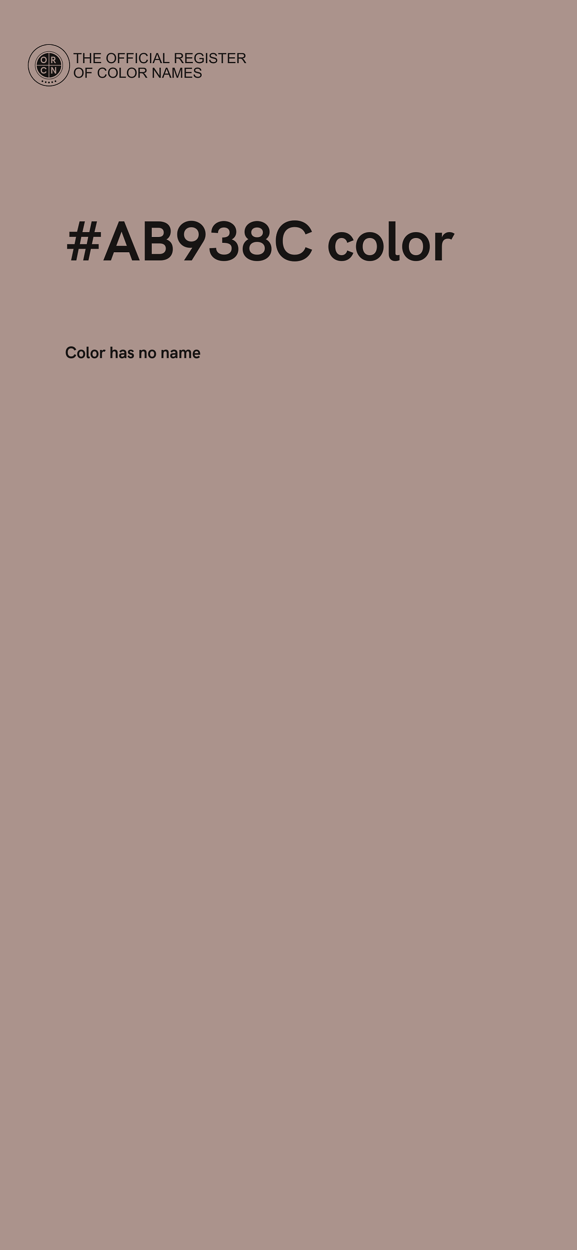 The digital color HEX #AB938C belongs to the Red Color Family featuring Low Saturation (Saturation Family) and Very Light (Brightness Family).