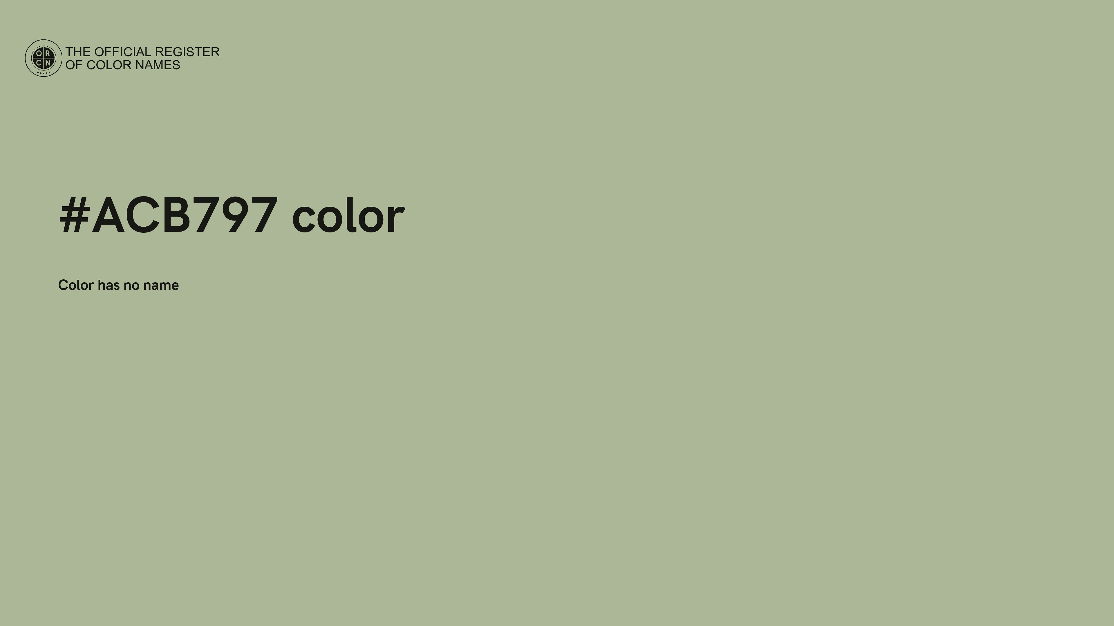 The digital color HEX #ACB797 belongs to the Chartreuse Color Family featuring Low Saturation (Saturation Family) and Very Light (Brightness Family).