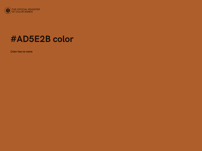 For printing in non digital world, #AD5E2B is represented in CMYK as 0 Cyan, 31 Magenta, 51 Yellow, and 32 Black (Key) (C:0 M:31 Y:51 K:32).