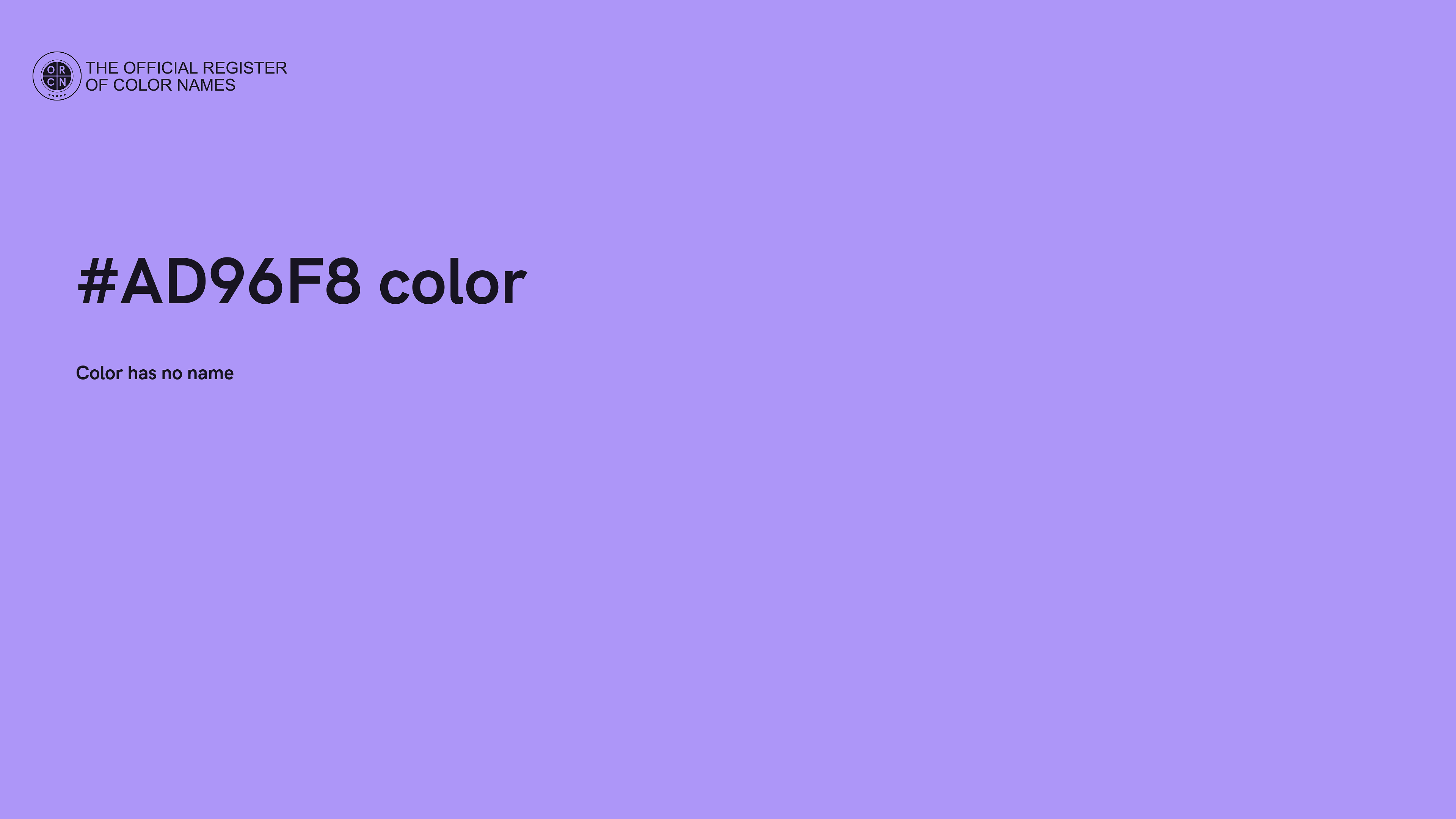 The digital color HEX #AD96F8 belongs to the Blue Color Family featuring Full Saturation (Saturation Family) and Very Light (Brightness Family).