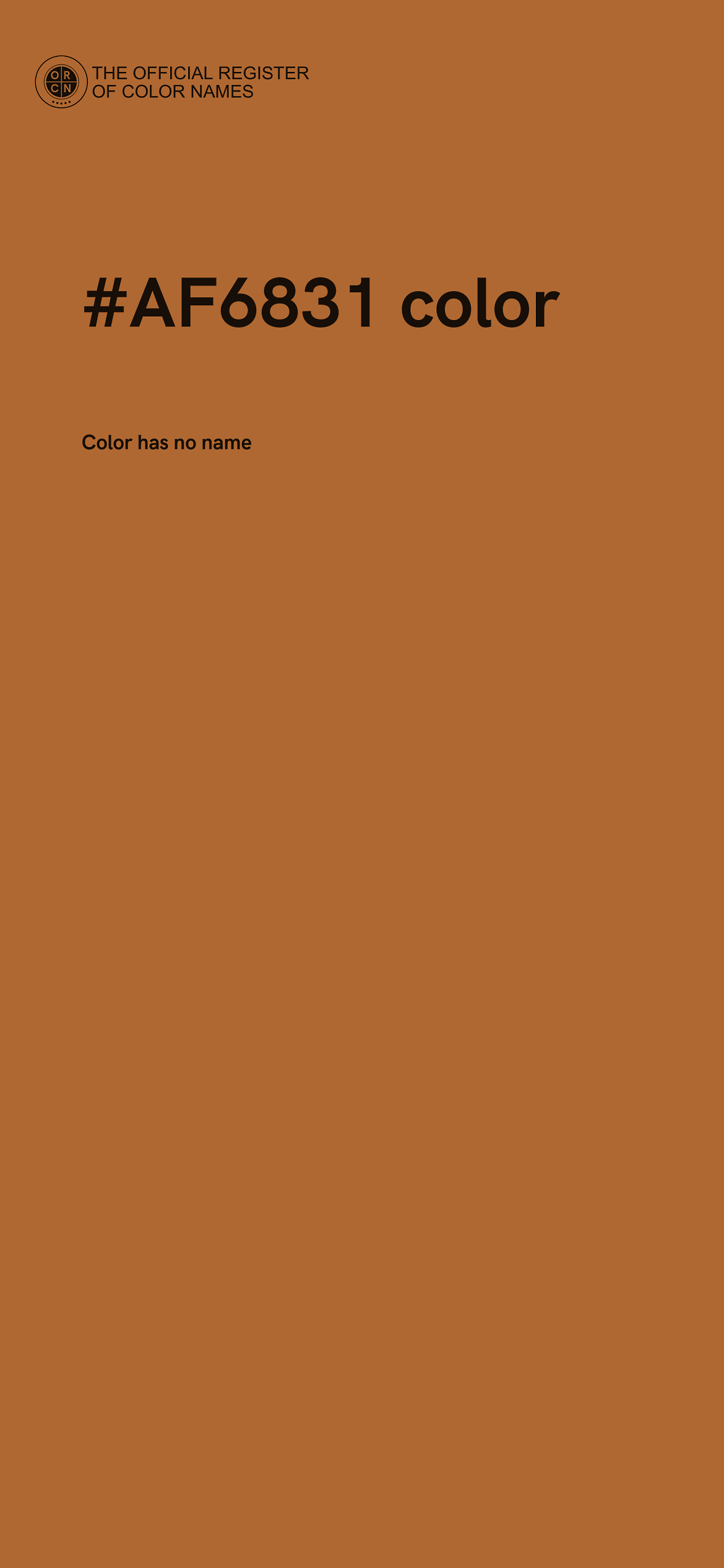 For printing in non digital world, #AF6831 is represented in CMYK as 0 Cyan, 28 Magenta, 49 Yellow, and 31 Black (Key) (C:0 M:28 Y:49 K:31).