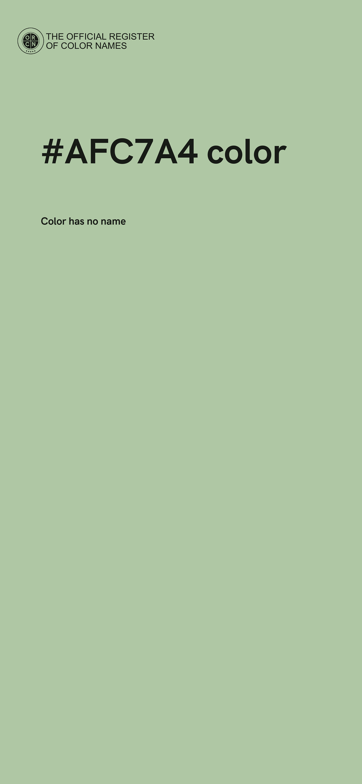 The digital color HEX #AFC7A4 belongs to the Chartreuse Color Family featuring Low Saturation (Saturation Family) and Very Light (Brightness Family).