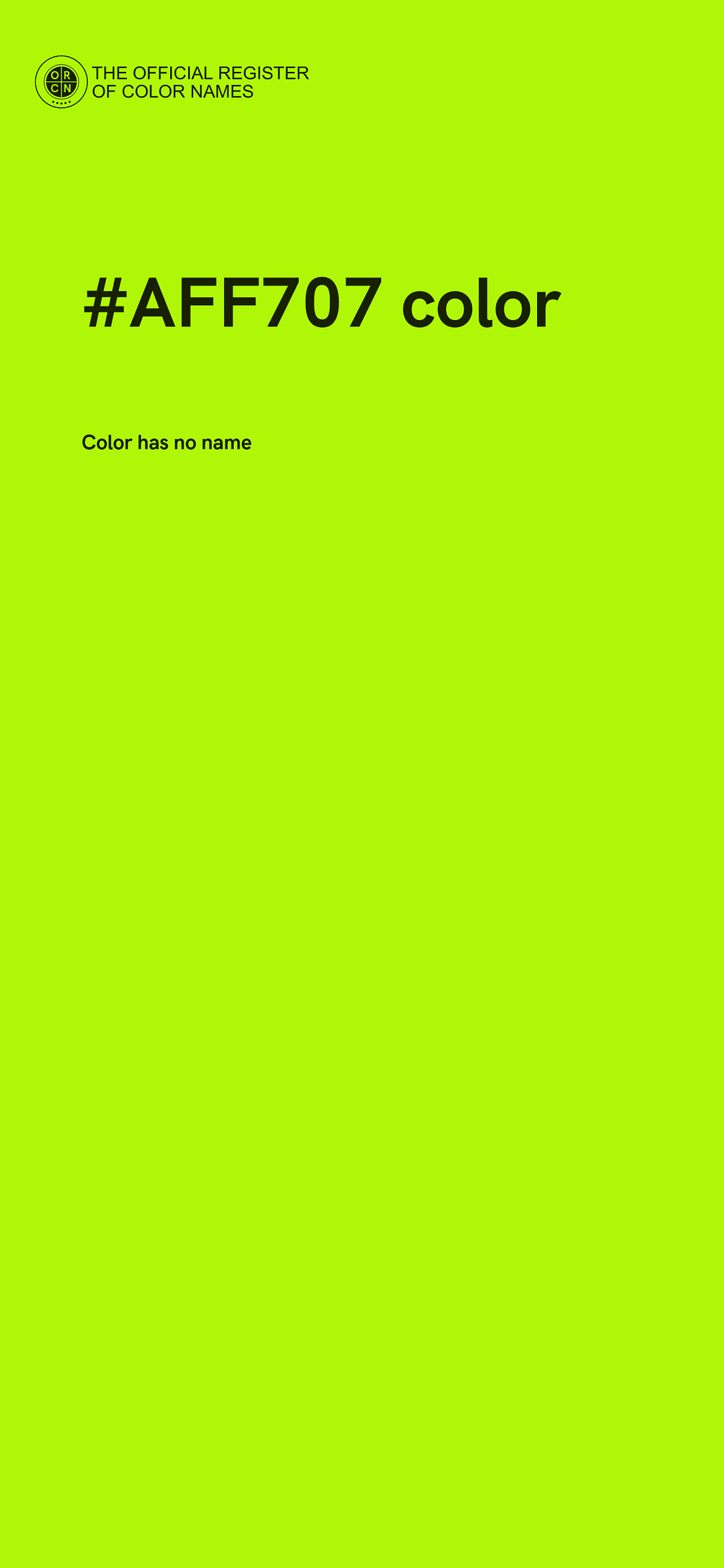 The digital color HEX #AFF707 belongs to the Chartreuse Color Family featuring Full Saturation (Saturation Family) and Light (Brightness Family).