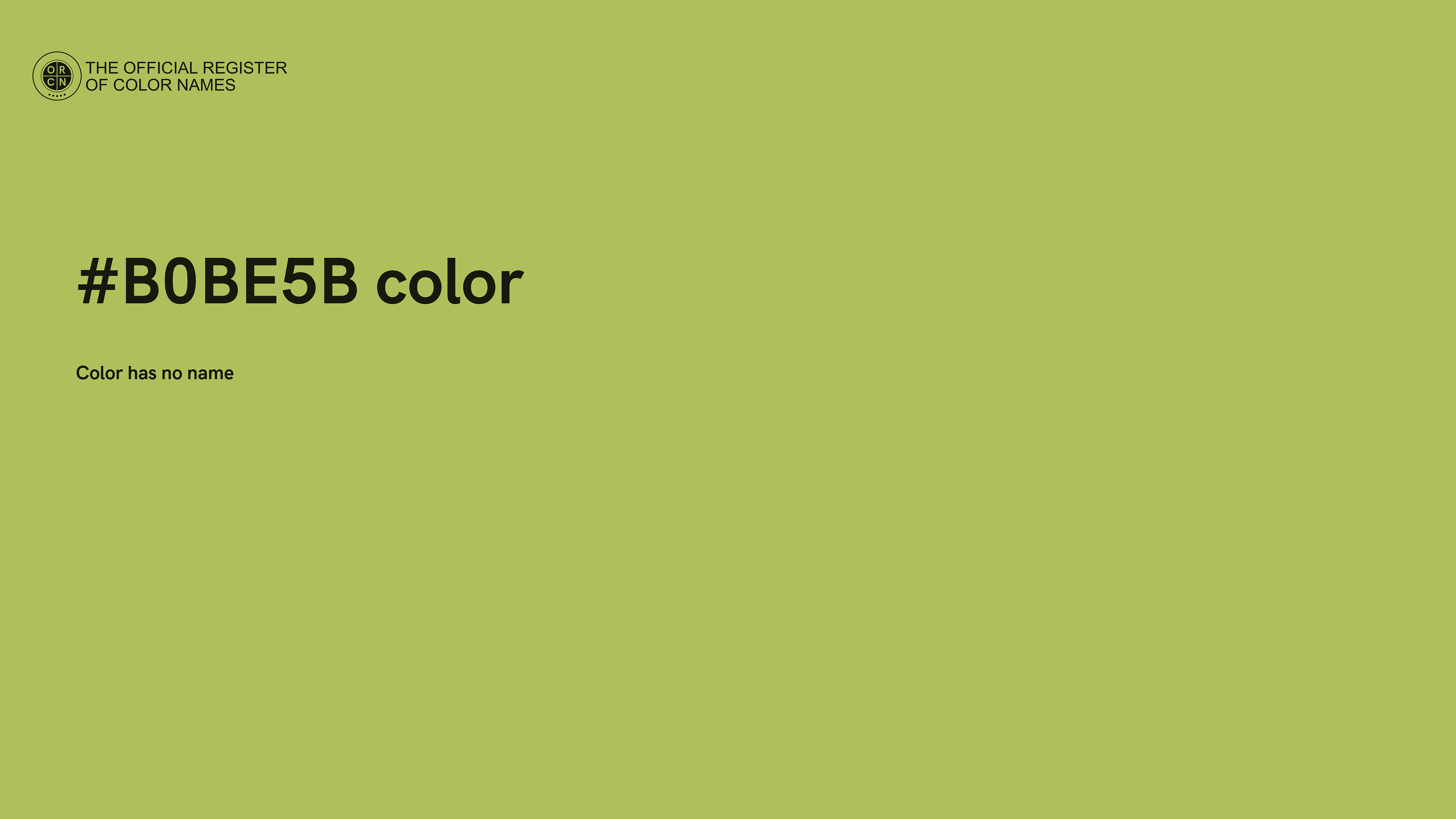 The digital color HEX #B0BE5B belongs to the Yellow Color Family featuring Moderate Saturation (Saturation Family) and Light (Brightness Family).