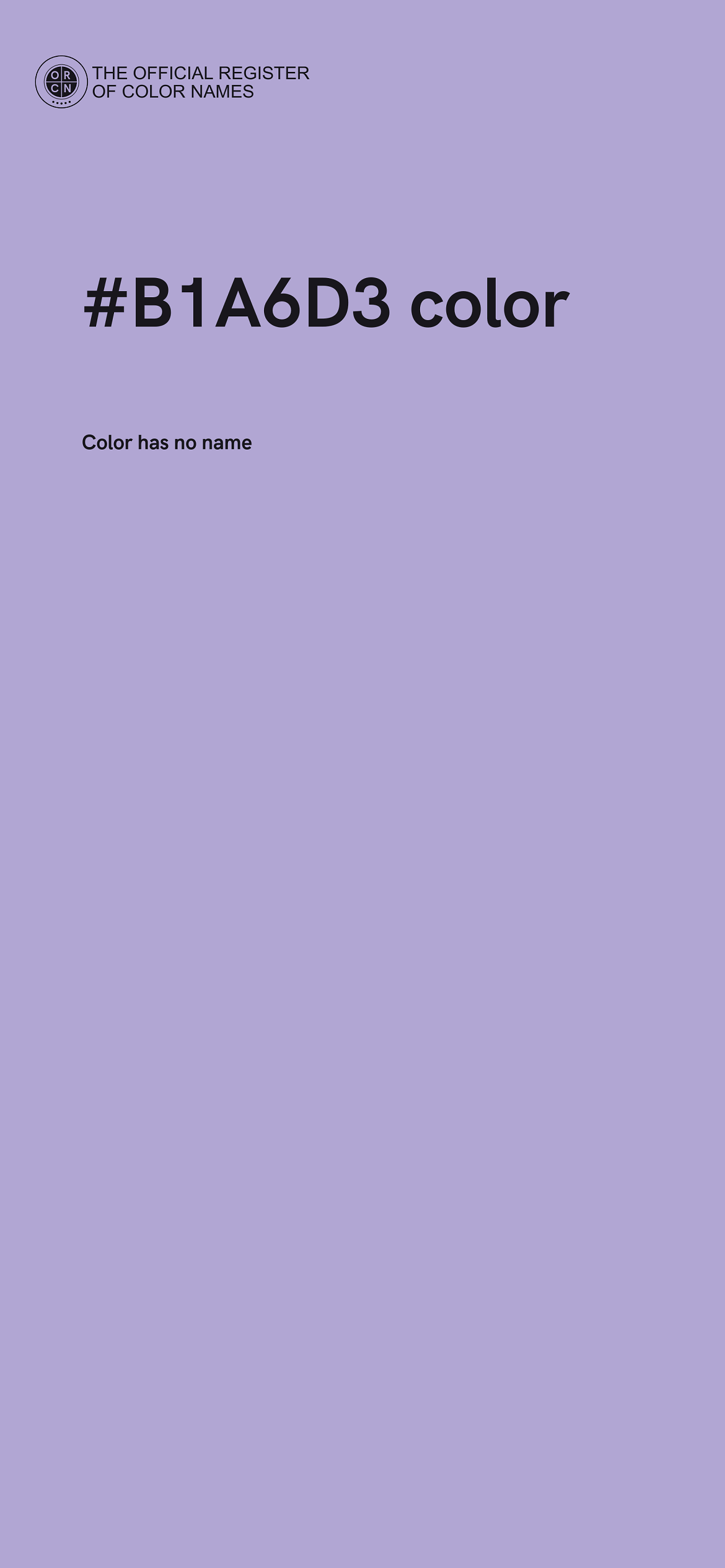 The digital color HEX #B1A6D3 belongs to the Violet Color Family featuring Mild Saturation (Saturation Family) and Very Light (Brightness Family).