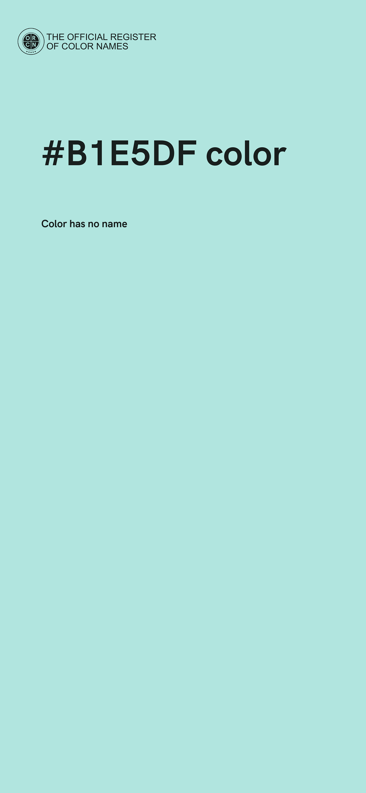 The digital color HEX #B1E5DF belongs to the Cyan Color Family featuring Moderate Saturation (Saturation Family) and Very Light (Brightness Family).
