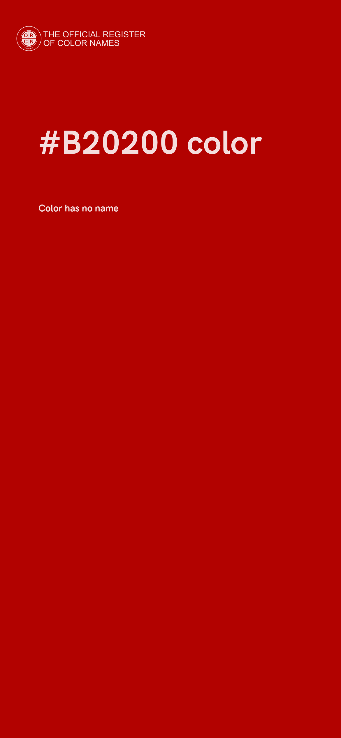 The digital color HEX #B20200 belongs to the Red Color Family featuring Full Saturation (Saturation Family) and Neutral (Brightness Family).