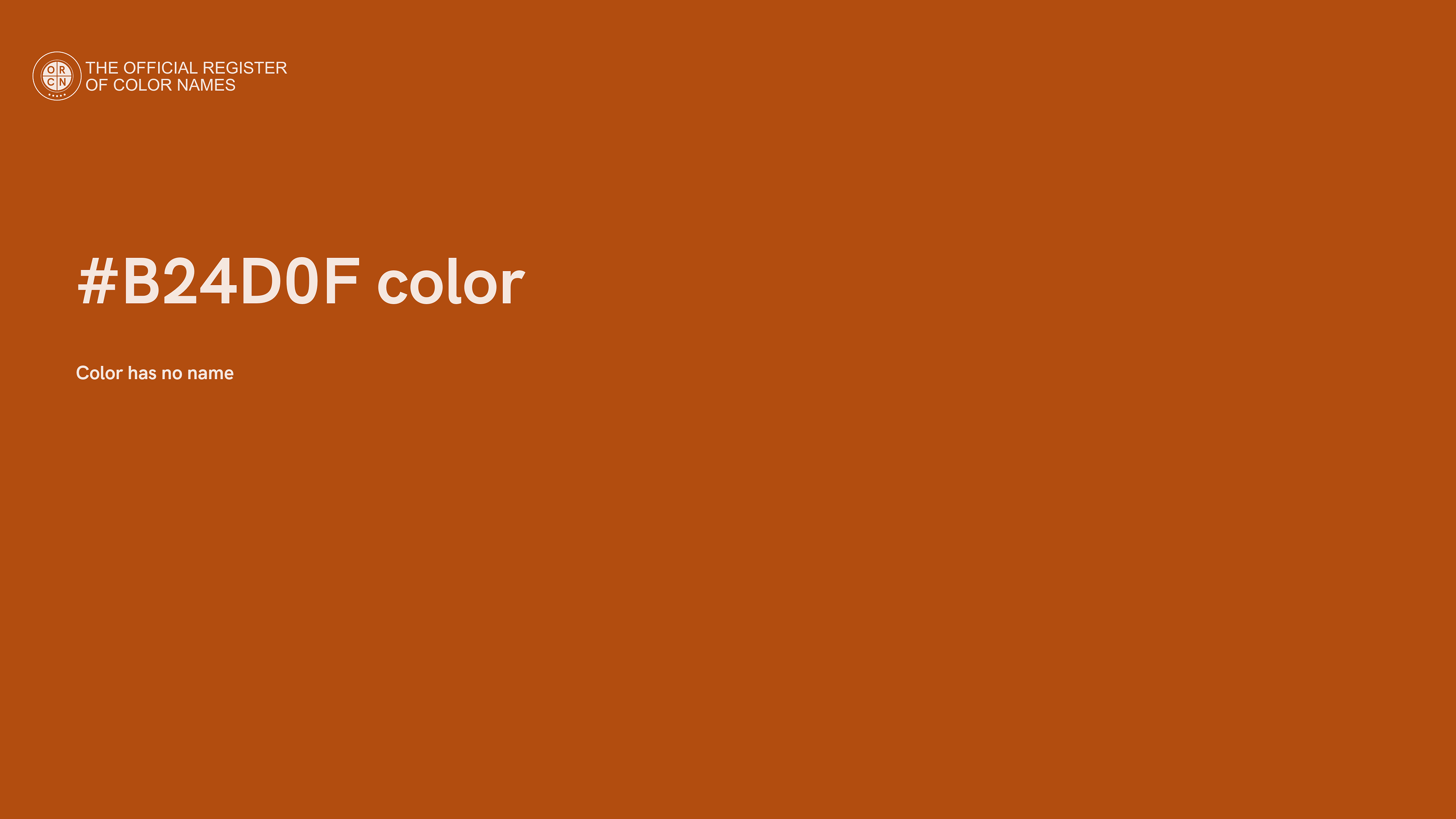 The digital color HEX #B24D0F belongs to the Orange Color Family featuring High Saturation (Saturation Family) and Neutral (Brightness Family).