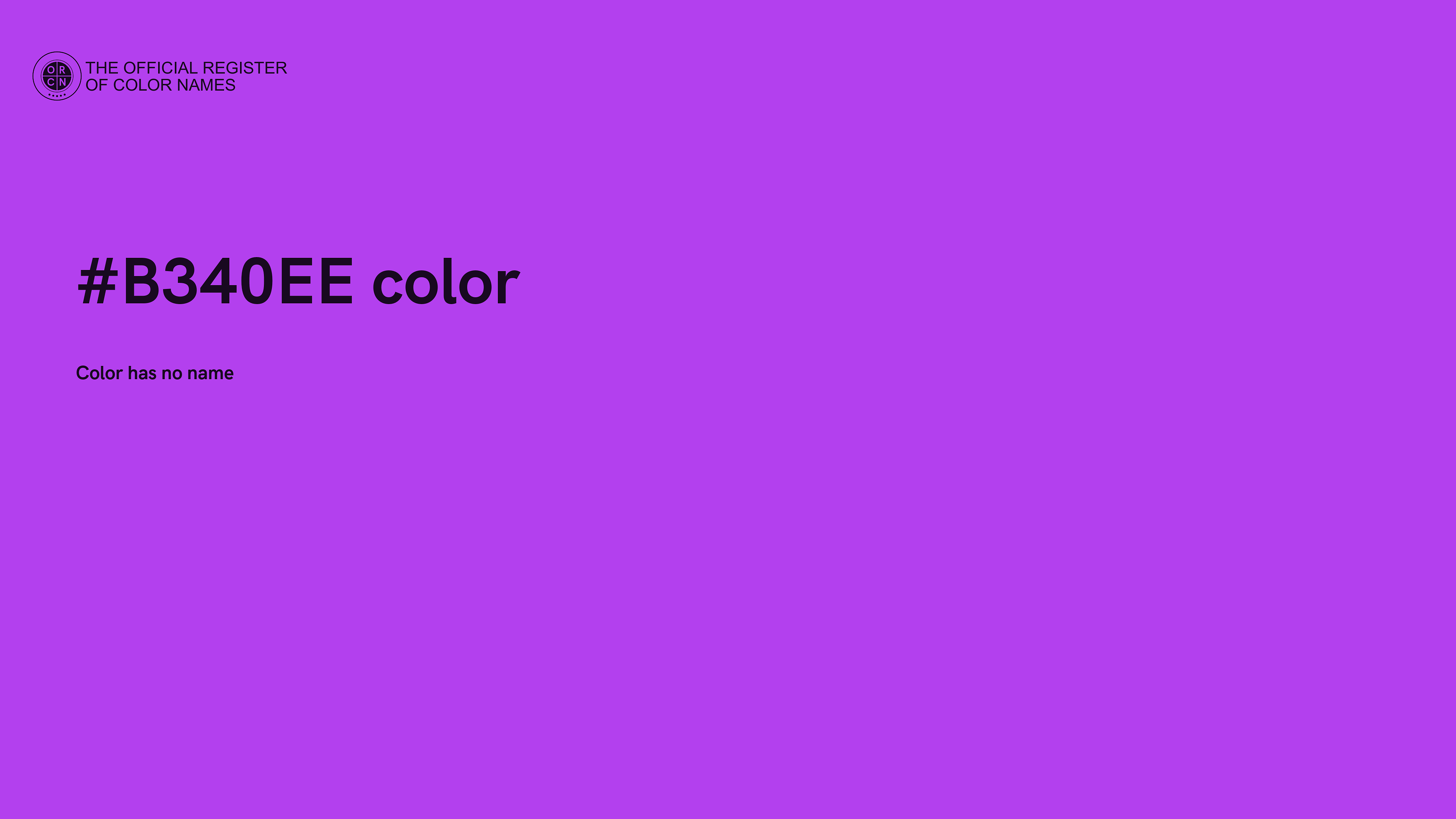 HEX code #B340EE represent the color in hexadecimal format by combining three values – the amounts of Red, Green and Blue (RGB). Its RGB composition is 179, 64, 238 ( rgb(179, 64, 238) ), which breaks down into 70.2% of Red, 25.1% Green and 93.3% Blue.