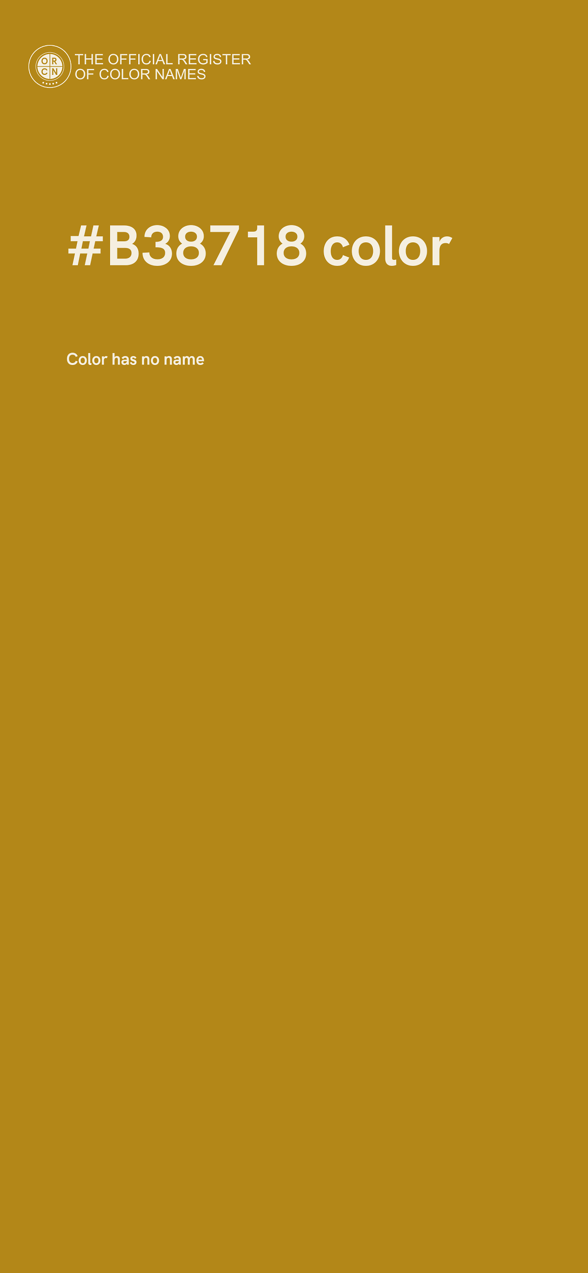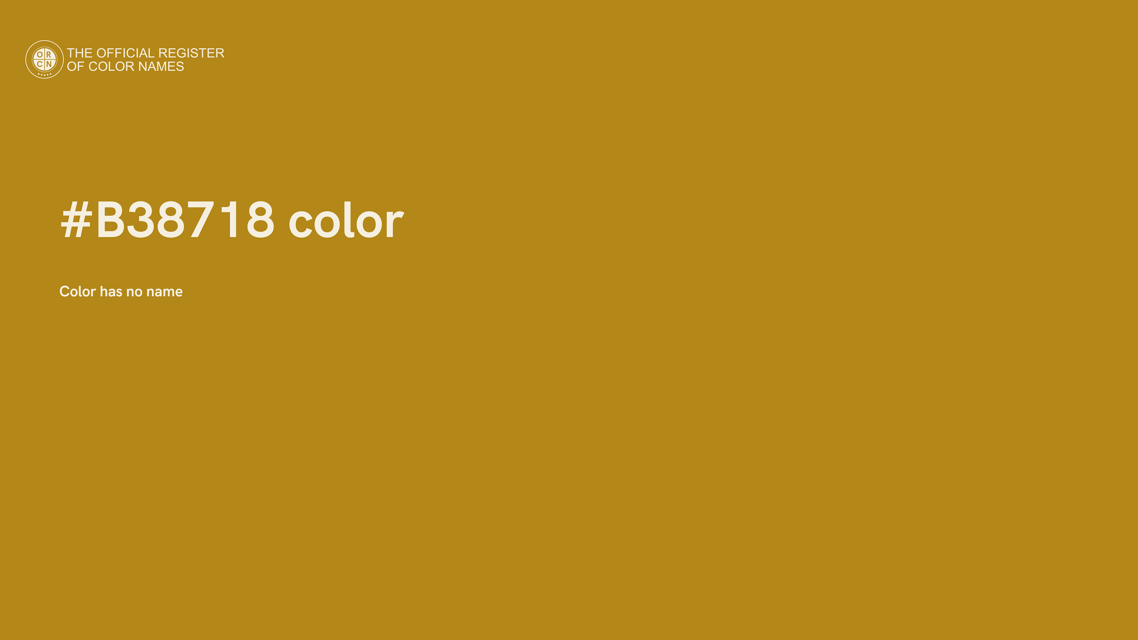 The digital color HEX #B38718 belongs to the Orange Color Family featuring High Saturation (Saturation Family) and Light (Brightness Family).