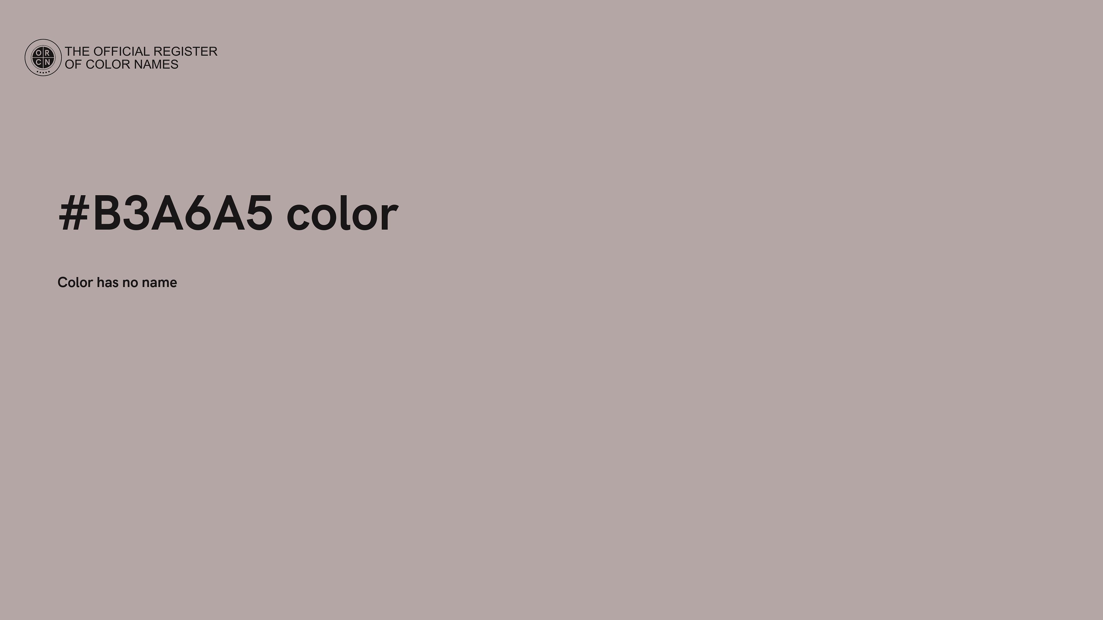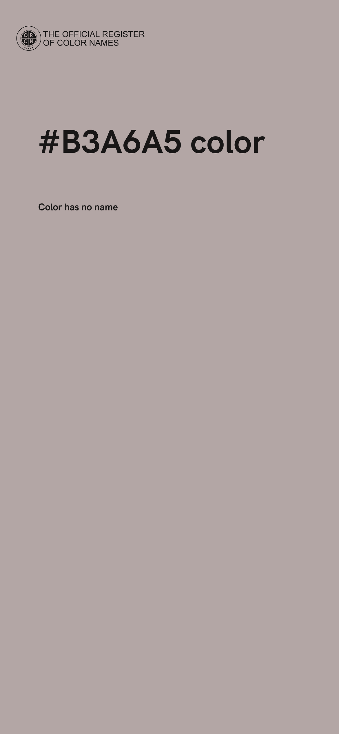 For printing in non digital world, #B3A6A5 is represented in CMYK as 0 Cyan, 5 Magenta, 5 Yellow, and 30 Black (Key) (C:0 M:5 Y:5 K:30).