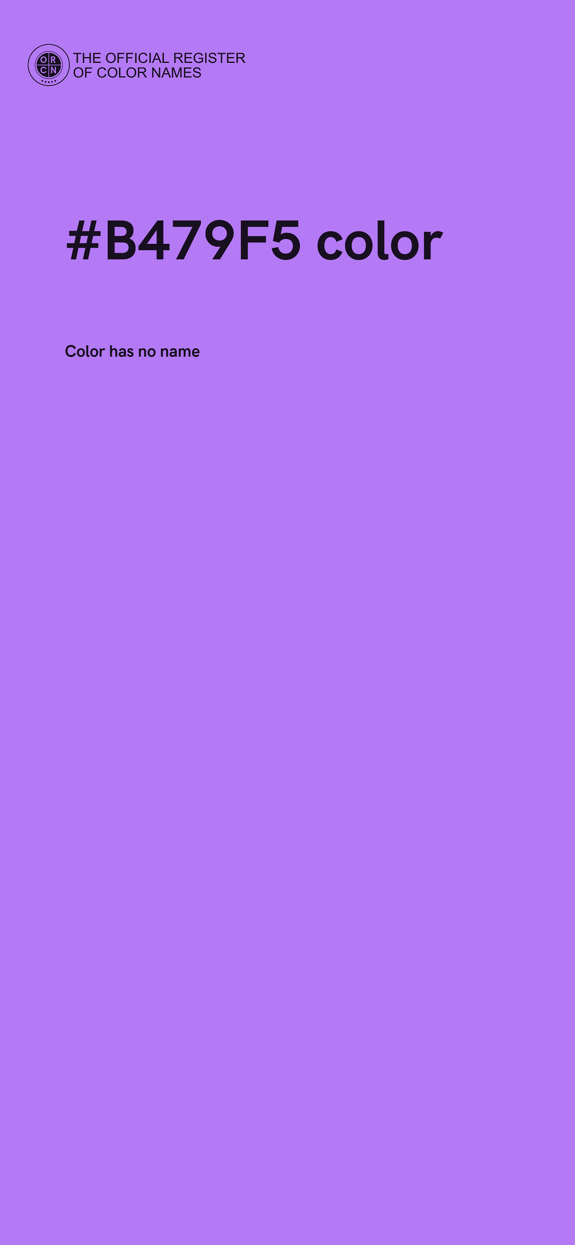 The digital color HEX #B479F5 belongs to the Violet Color Family featuring Full Saturation (Saturation Family) and Very Light (Brightness Family).