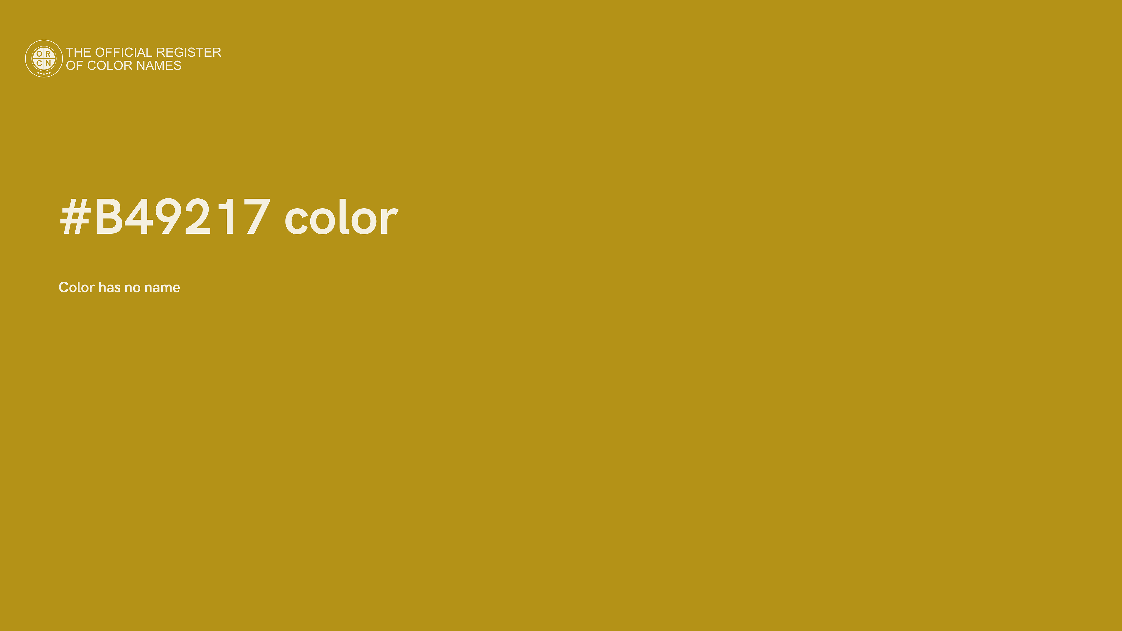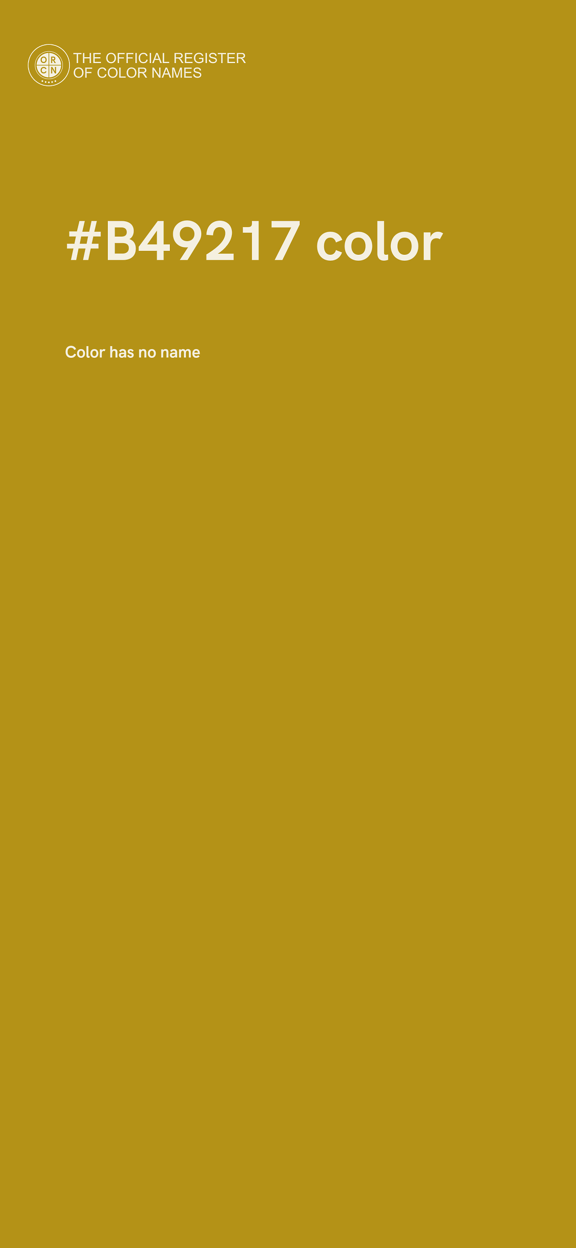 The digital color HEX #B49217 belongs to the Yellow Color Family featuring High Saturation (Saturation Family) and Light (Brightness Family).