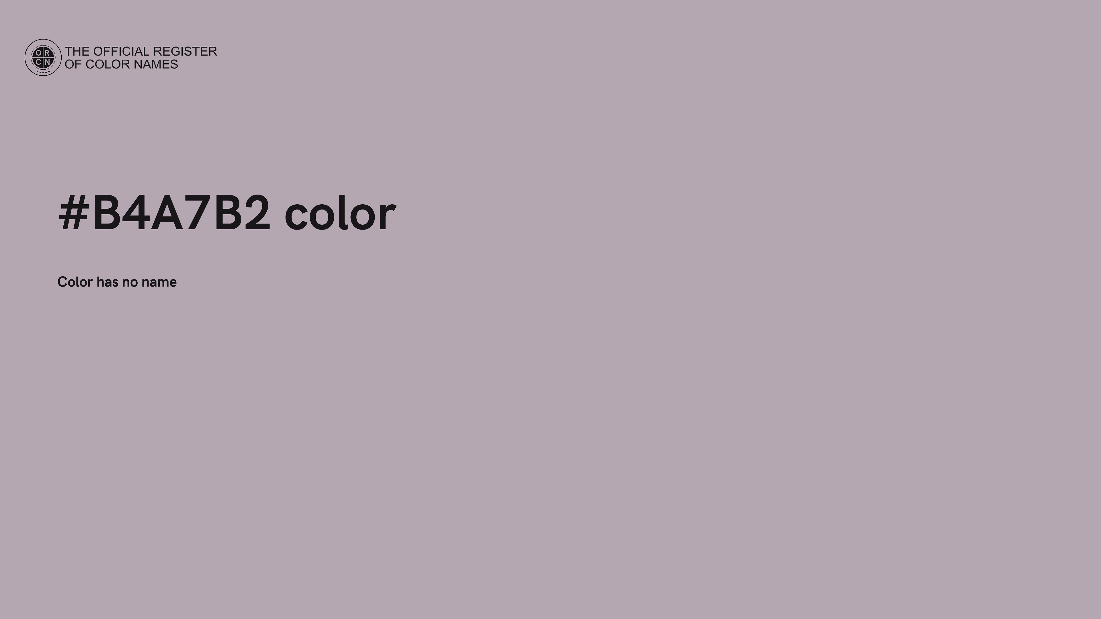 The digital color HEX #B4A7B2 belongs to the Magenta Color Family featuring Desaturated (Saturation Family) and Very Light (Brightness Family).