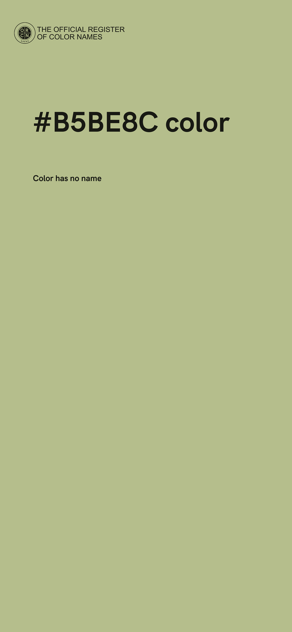 The digital color HEX #B5BE8C belongs to the Yellow Color Family featuring Mild Saturation (Saturation Family) and Very Light (Brightness Family).