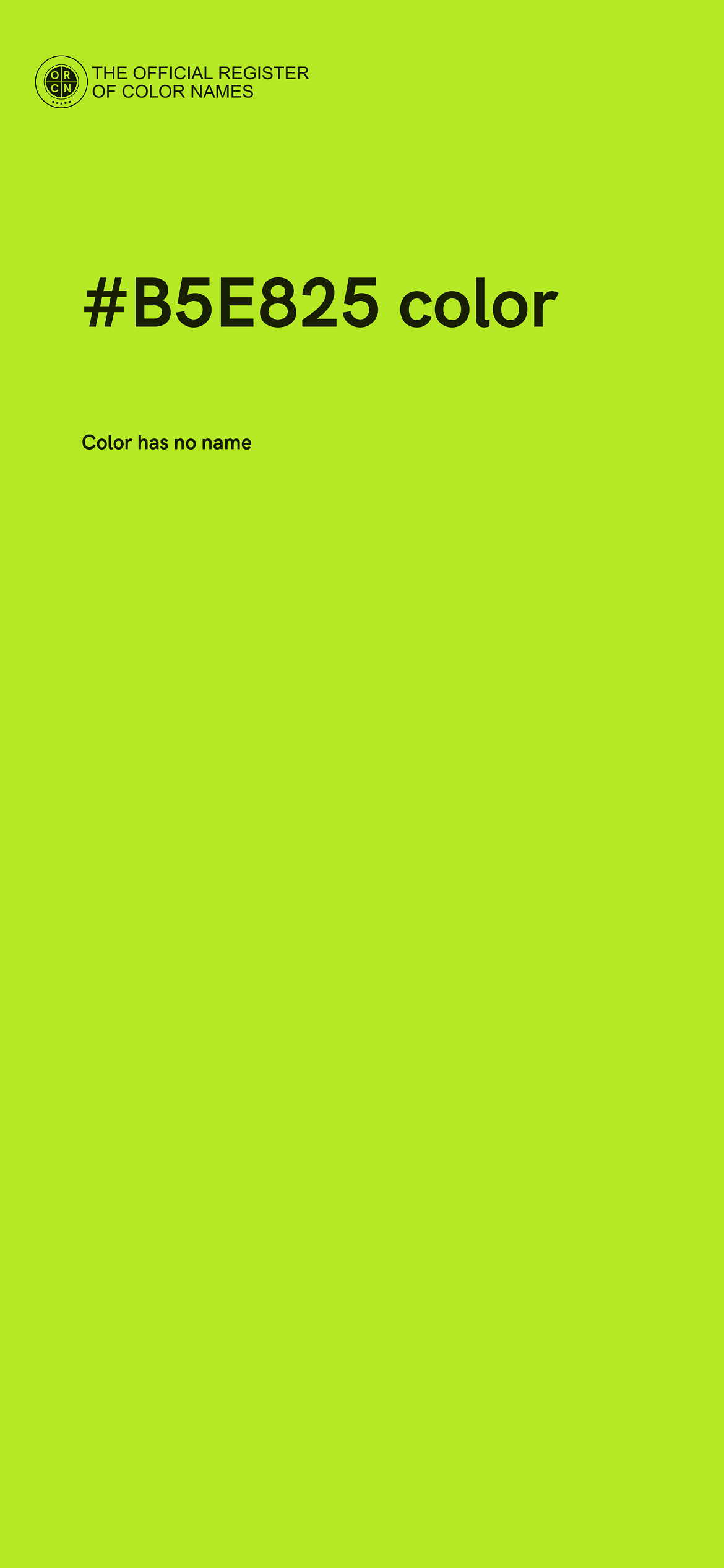 The digital color HEX #B5E825 belongs to the Chartreuse Color Family featuring High Saturation (Saturation Family) and Light (Brightness Family).