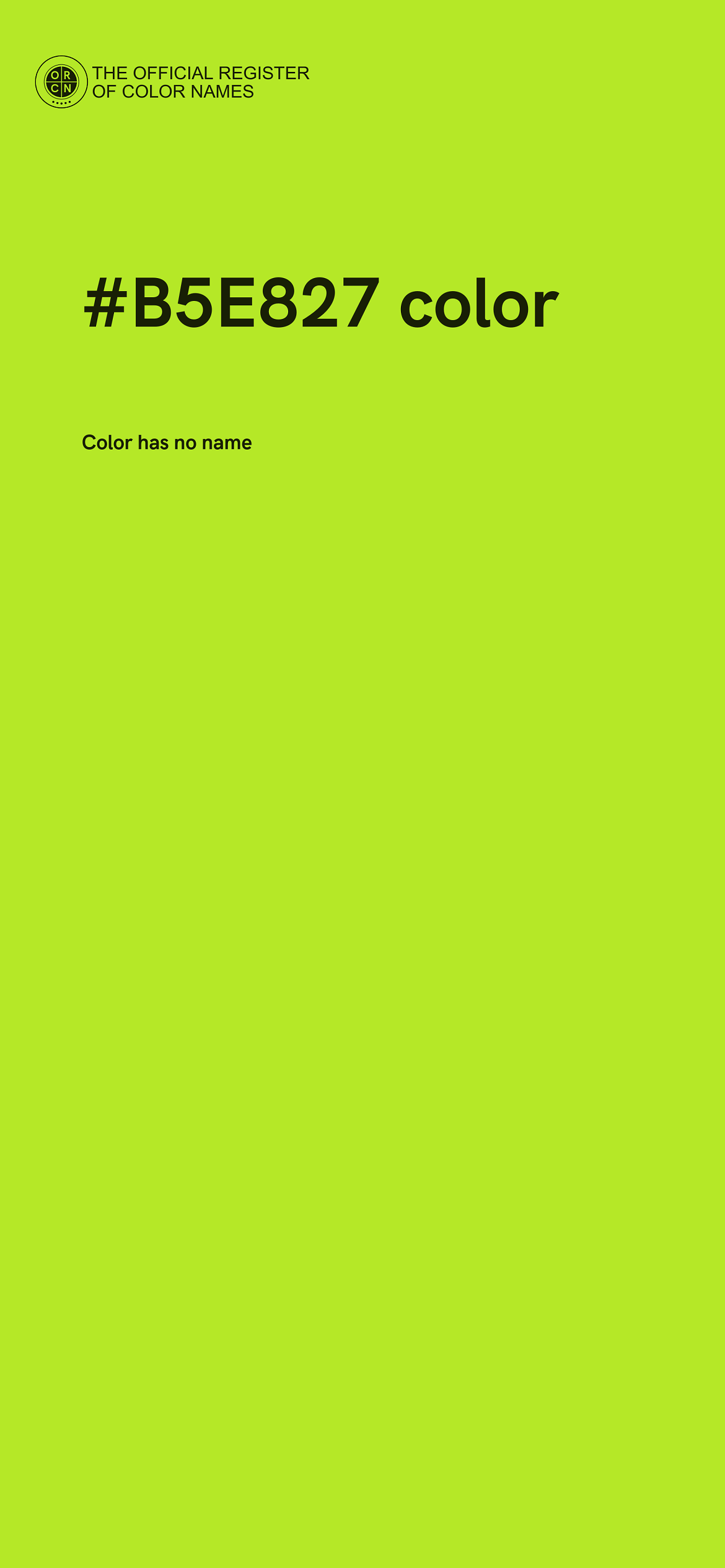 The digital color HEX #B5E827 belongs to the Chartreuse Color Family featuring High Saturation (Saturation Family) and Light (Brightness Family).