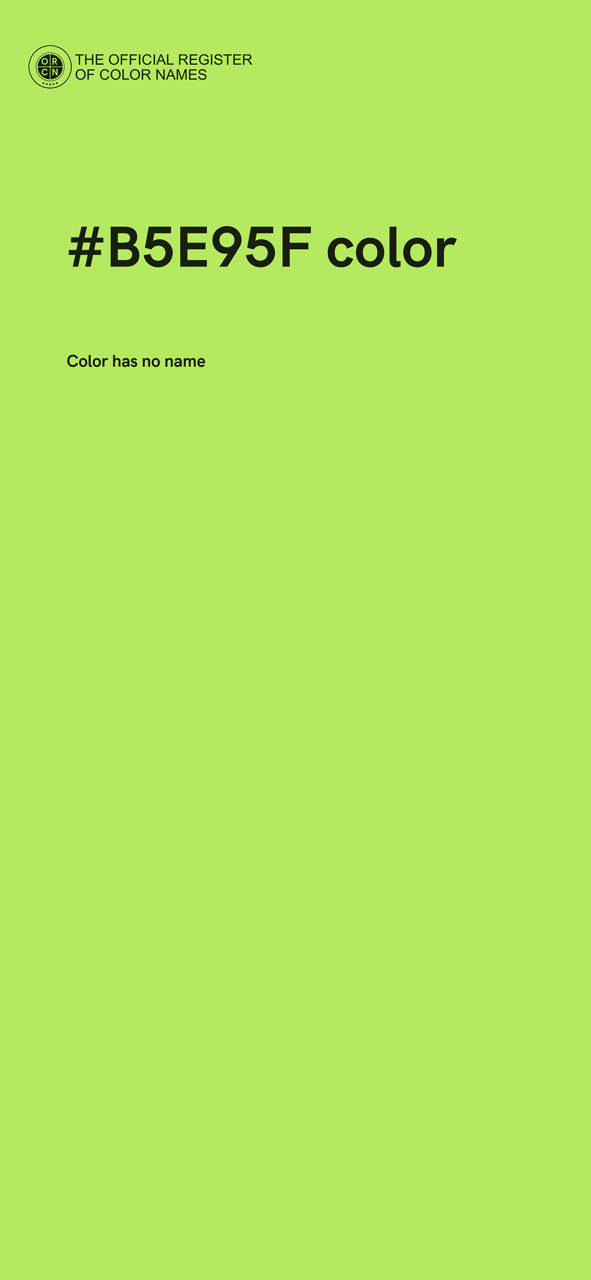 The digital color HEX #B5E95F belongs to the Chartreuse Color Family featuring High Saturation (Saturation Family) and Very Light (Brightness Family).