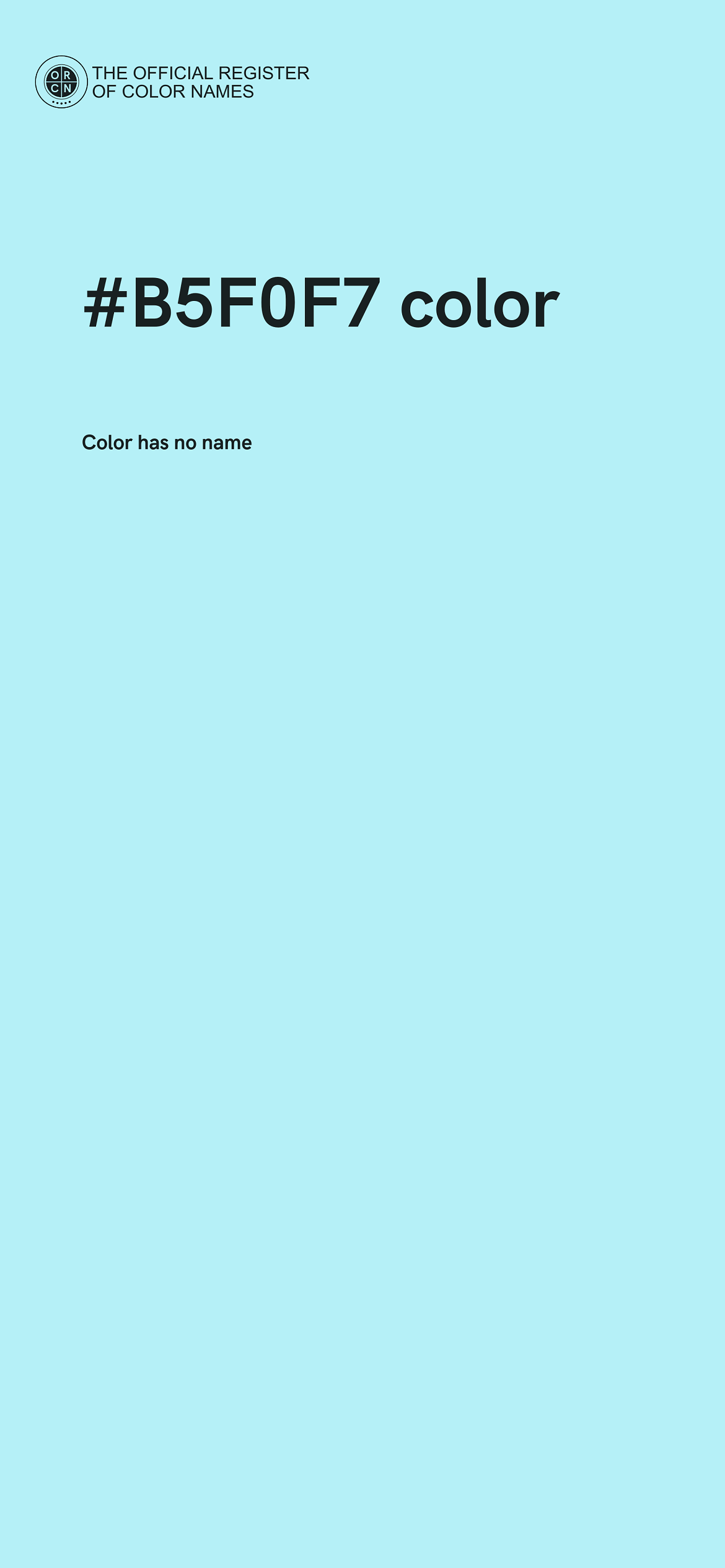 The digital color HEX #B5F0F7 belongs to the Cyan Color Family featuring High Saturation (Saturation Family) and Very Light (Brightness Family).
