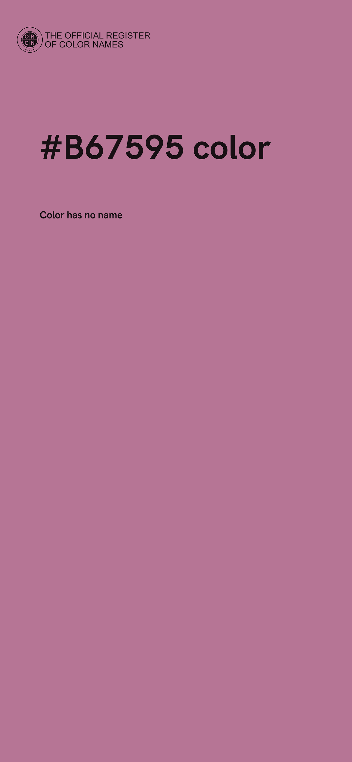 The digital color HEX #B67595 belongs to the Rose Color Family featuring Mild Saturation (Saturation Family) and Light (Brightness Family).