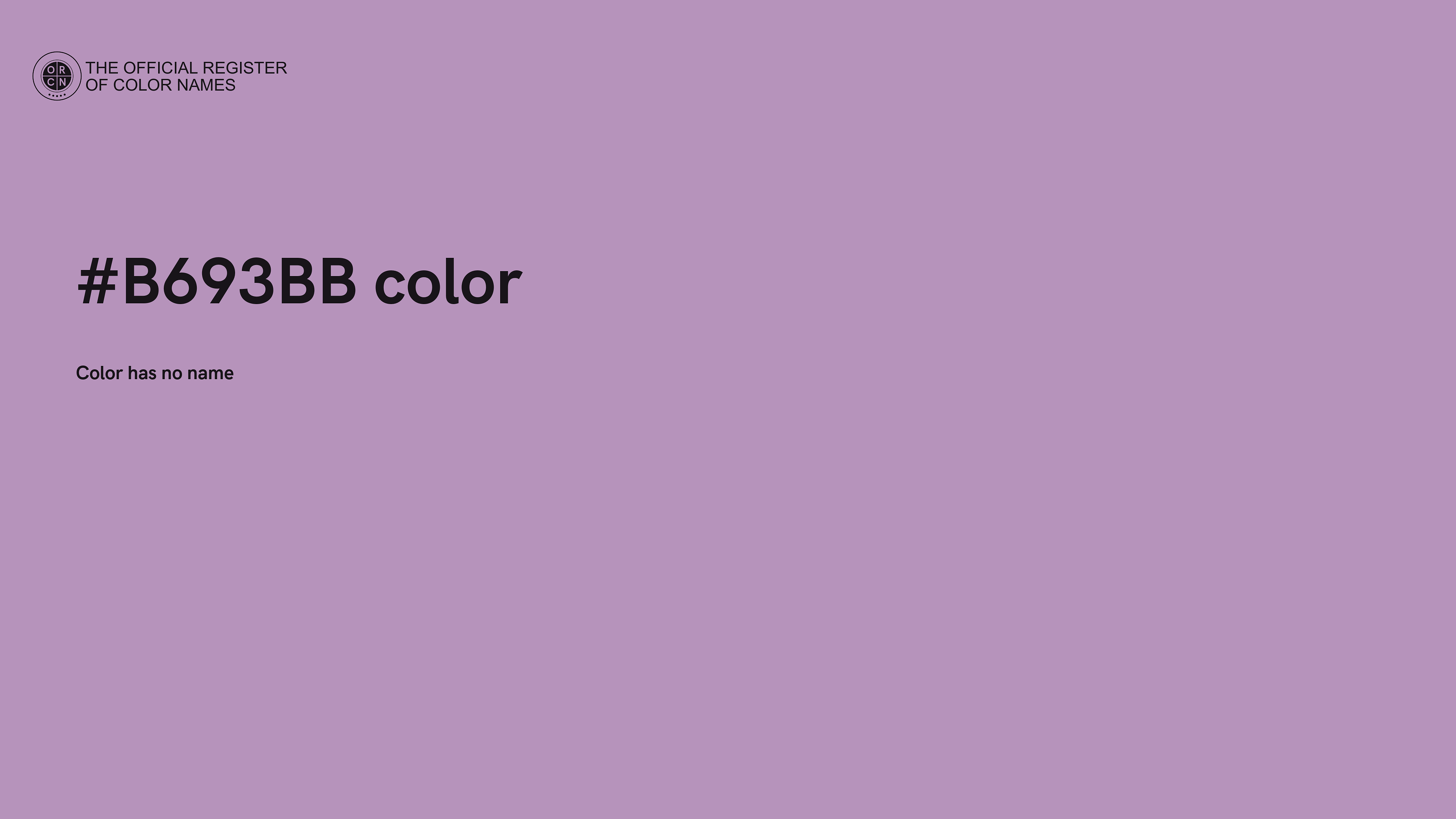 The digital color HEX #B693BB belongs to the Magenta Color Family featuring Low Saturation (Saturation Family) and Very Light (Brightness Family).