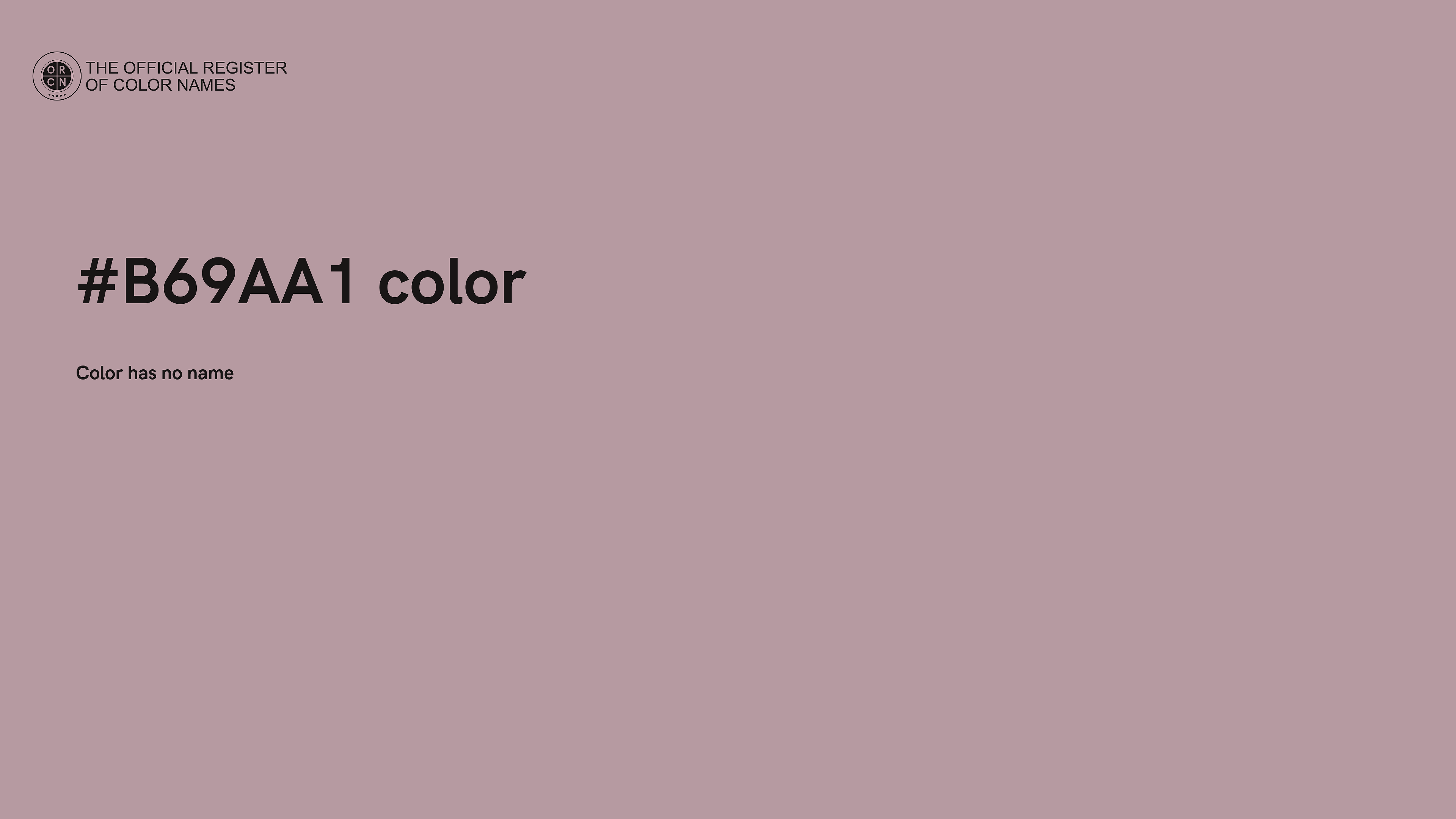 The digital color HEX #B69AA1 belongs to the Red Color Family featuring Low Saturation (Saturation Family) and Very Light (Brightness Family).