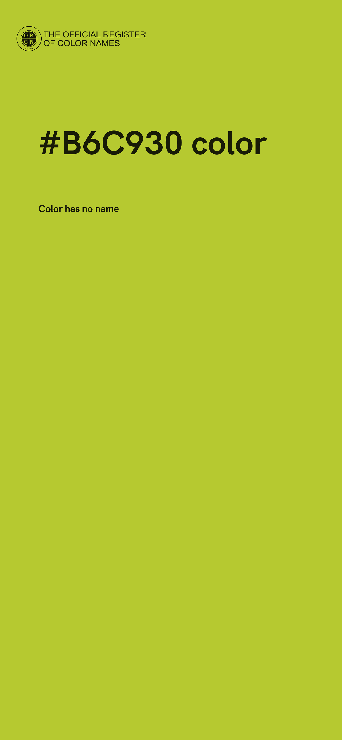 The digital color HEX #B6C930 belongs to the Yellow Color Family featuring High Saturation (Saturation Family) and Light (Brightness Family).