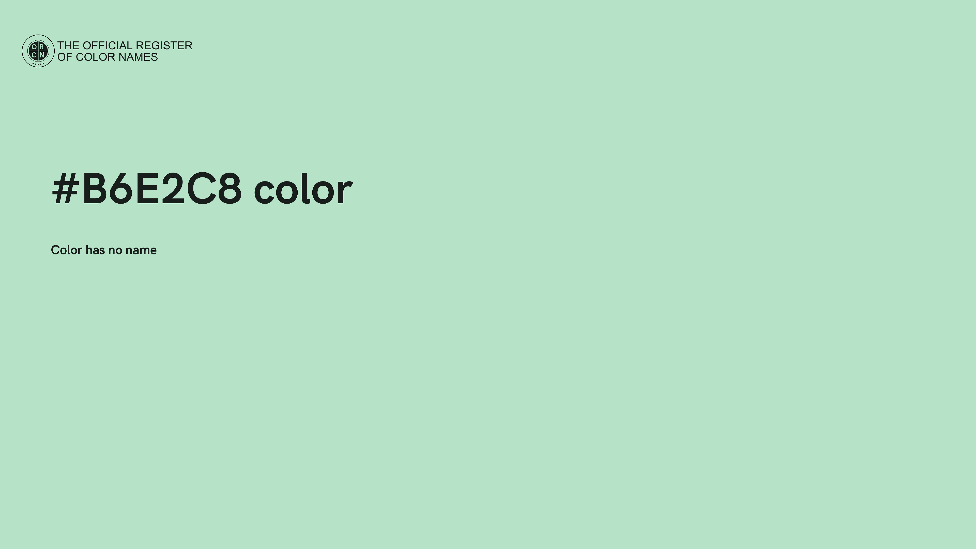 For printing in non digital world, #B6E2C8 is represented in CMYK as 17 Cyan, 0 Magenta, 10 Yellow, and 11 Black (Key) (C:17 M:0 Y:10 K:11).