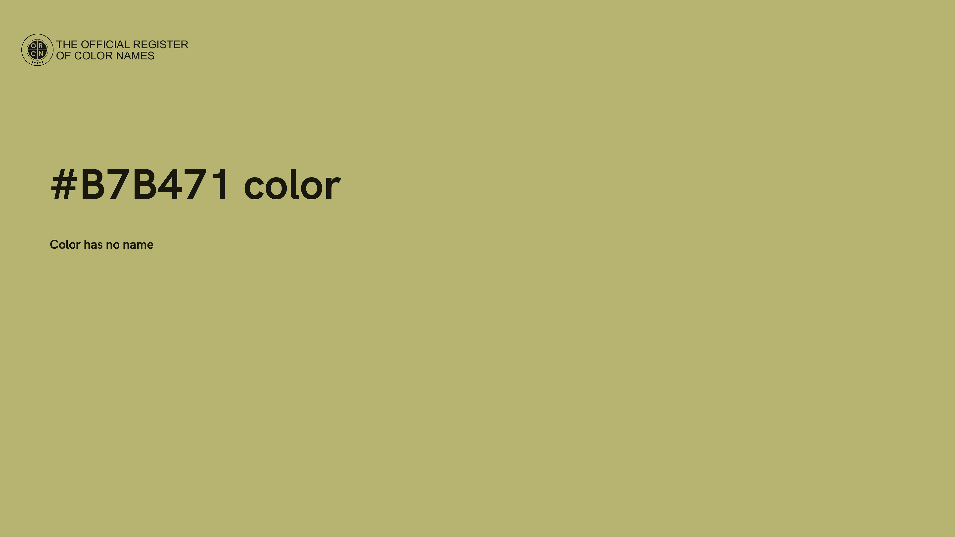 The digital color HEX #B7B471 belongs to the Yellow Color Family featuring Mild Saturation (Saturation Family) and Light (Brightness Family).