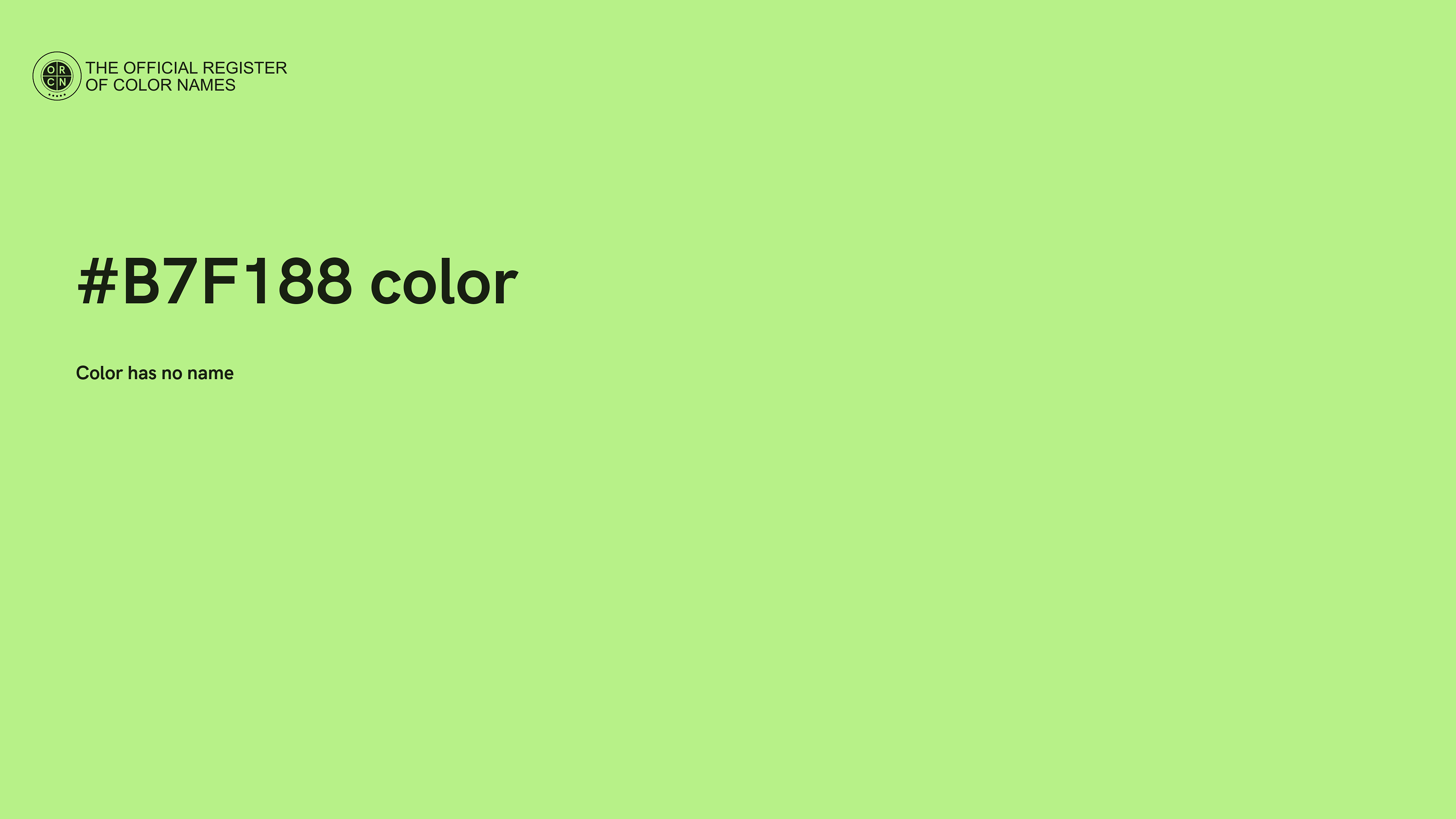 The digital color HEX #B7F188 belongs to the Chartreuse Color Family featuring High Saturation (Saturation Family) and Very Light (Brightness Family).