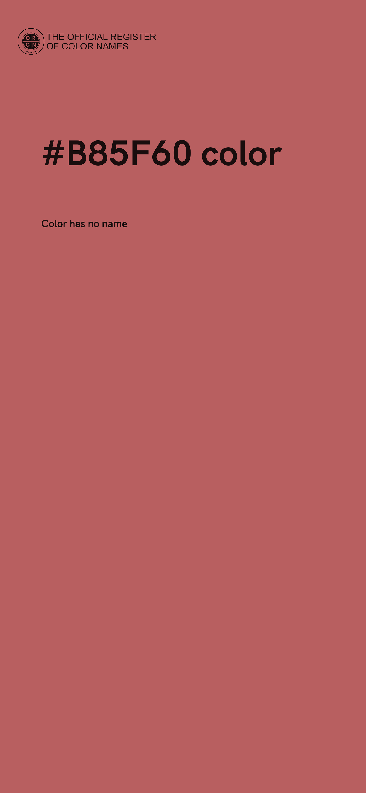 The digital color HEX #B85F60 belongs to the Red Color Family featuring Mild Saturation (Saturation Family) and Light (Brightness Family).