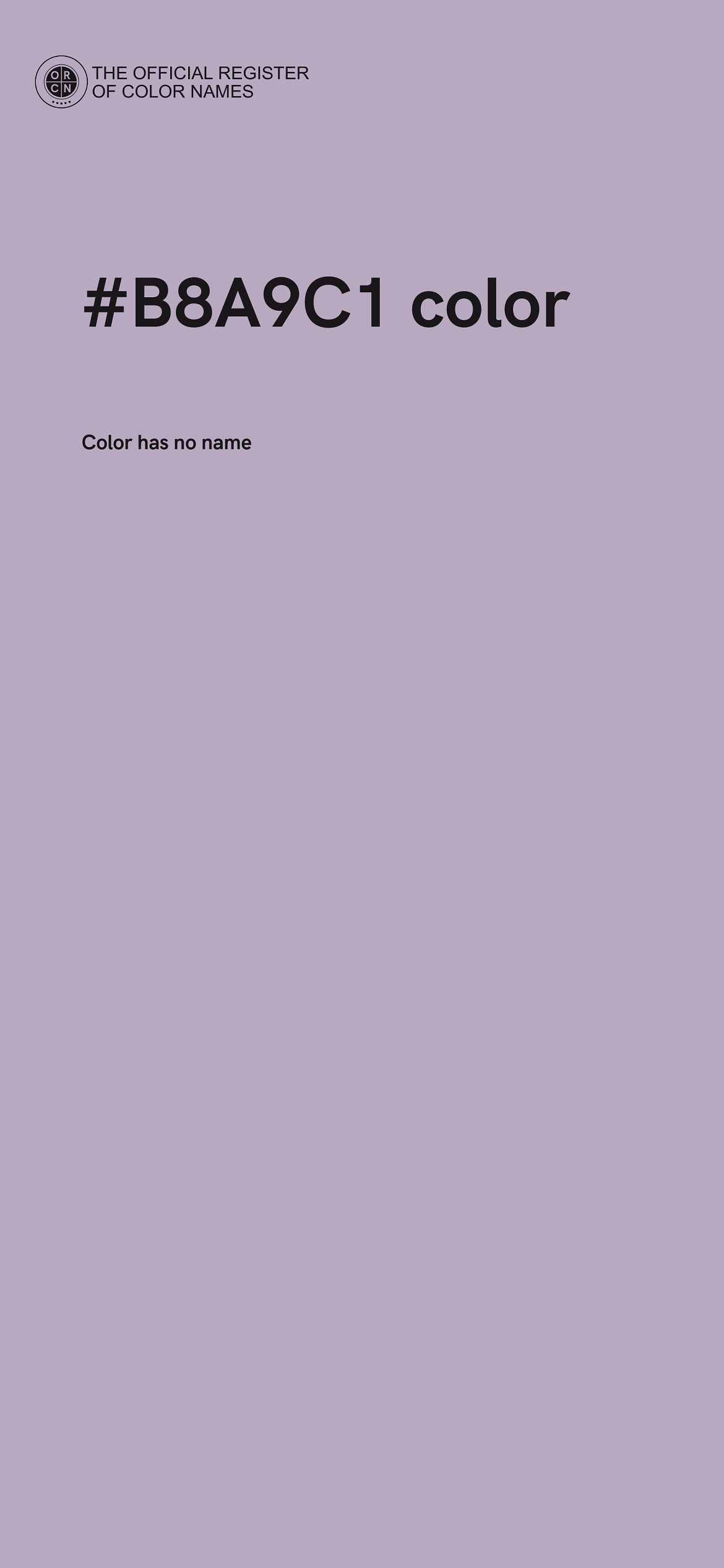For printing in non digital world, #B8A9C1 is represented in CMYK as 4 Cyan, 9 Magenta, 0 Yellow, and 24 Black (Key) (C:4 M:9 Y:0 K:24).