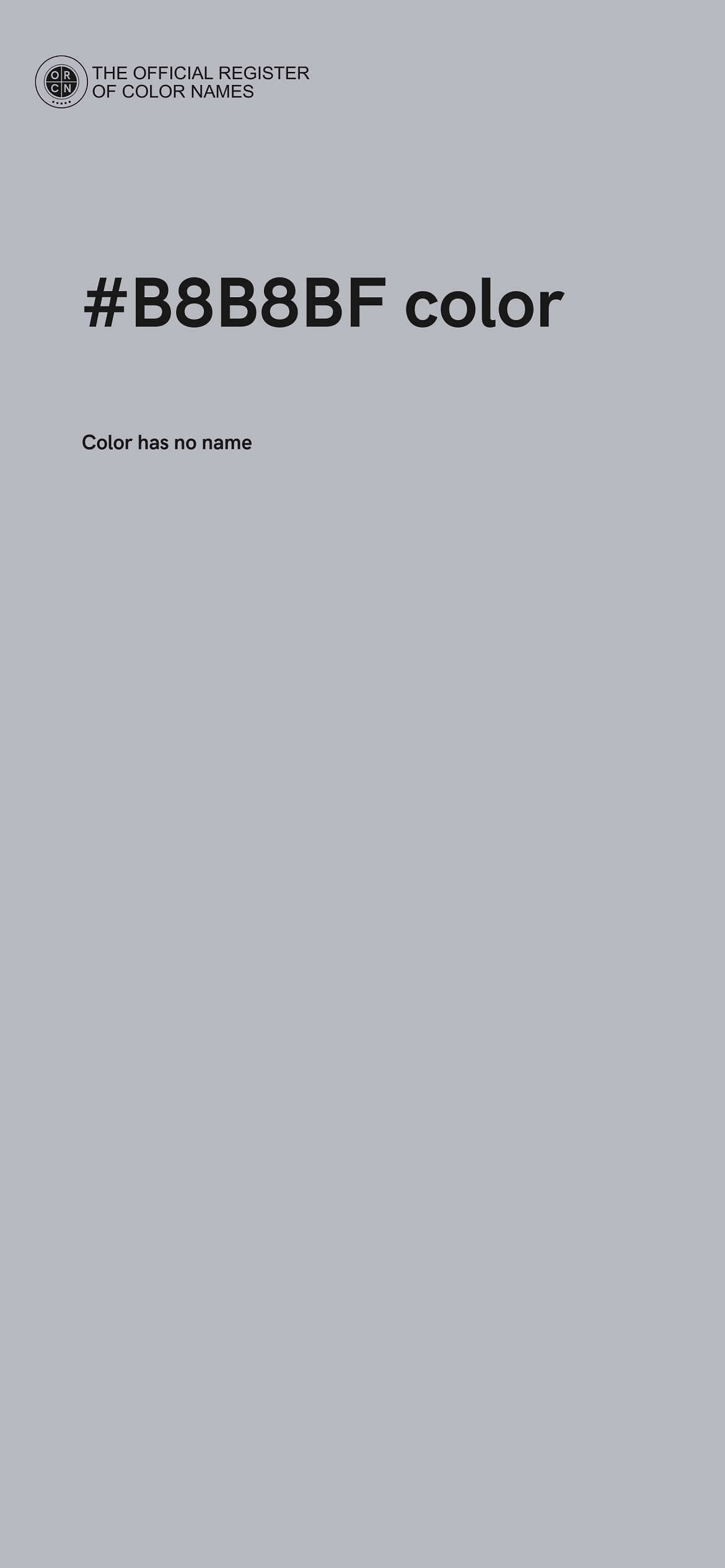 The digital color HEX #B8B8BF belongs to the Blue Color Family featuring Desaturated (Saturation Family) and Very Light (Brightness Family).